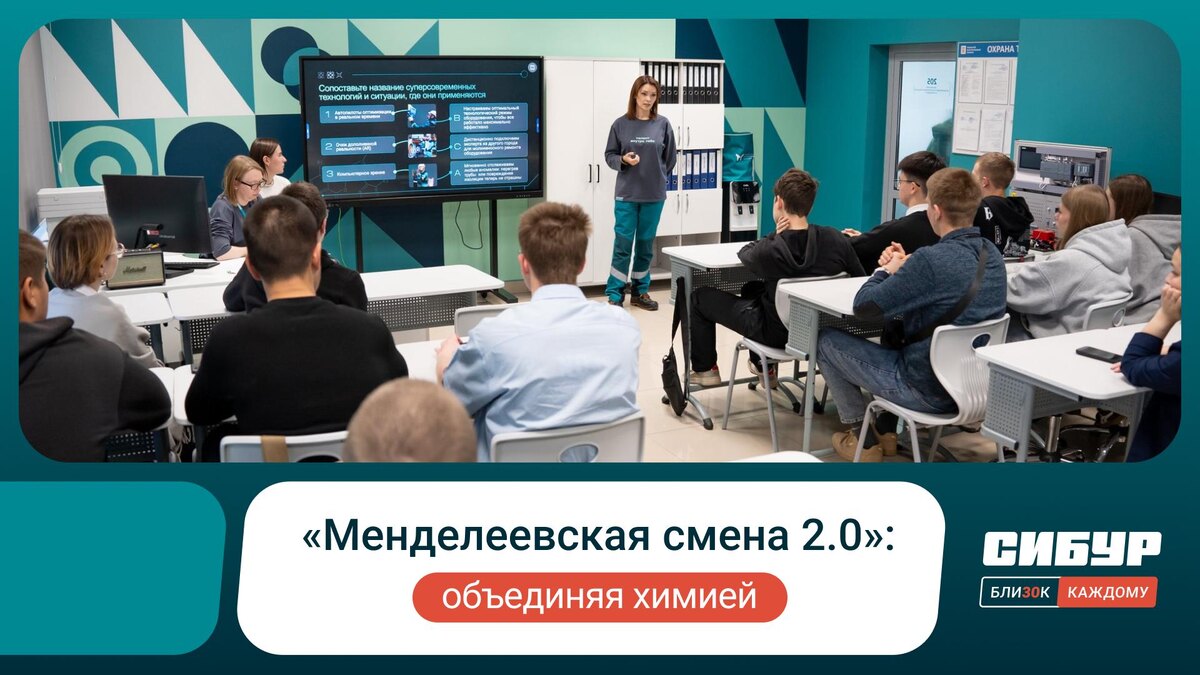 Менделеев заходит в класс И с ним — наш маскот Каталик. Они здесь, чтобы поприветствовать школьников и студентов, участников «Менделеевской смены». За два года работы нашей программы их собралось более 30 тысяч со всей России: 🔘14 тысяч школьников в 2024 году 🔘19 тысяч школьников в 2025 году 🔘более 1000 студентов 🔘и 35 городов-участников! А еще с нами было 745 амбассадоров-сотрудников СИБУРа: среди них члены правления, директора предприятий, руководители производств, дивизионов, функций, главные инженеры, технологи, химики. И впервые к нам присоединились клиенты СИБУРа — на реальных примерах они показали, как полимеры улучшают свойства их продукции и меняют целые отрасли. «В этом году проект впервые вышел за пределы школ и охватил средне-специальные и высшие учебные заведения, где мы провели «антипары». Мы стремимся не только передать знания и поделиться философией компании, но и вдохновить учащихся стать частью технологий, которые меняют мир. Такие уроки заряжают эмоциями всех