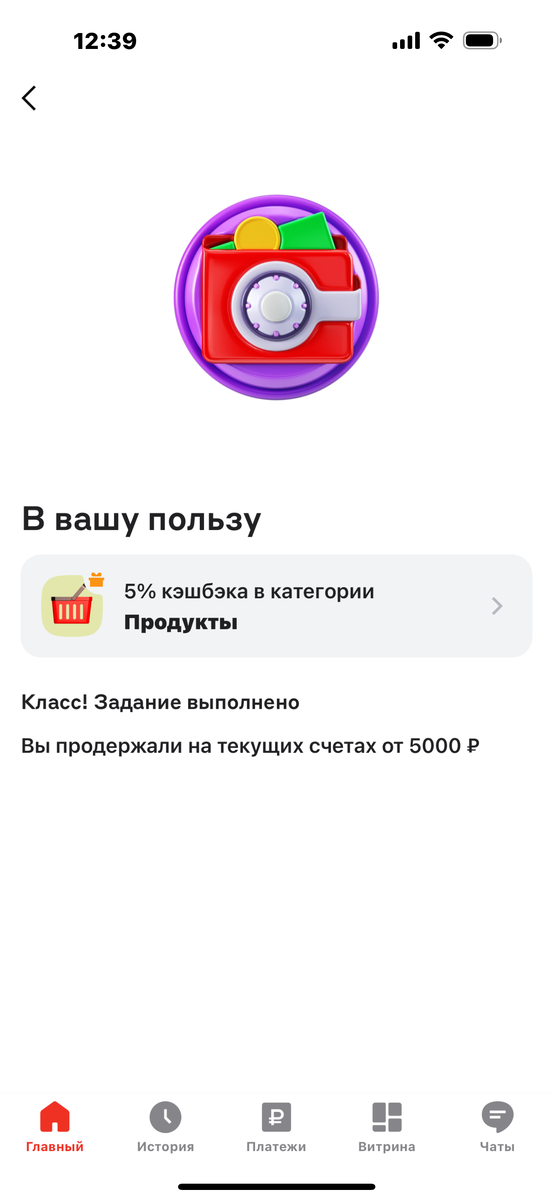 Кэшбэк на продукты 5 % - подарок от красного банка за выполнение задания!