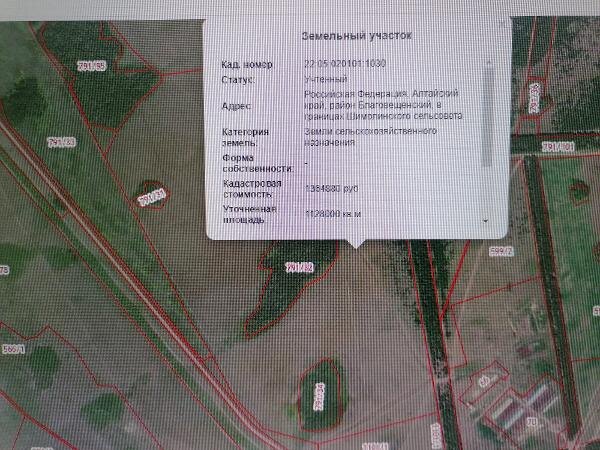 Название: Земельный участок кадастровый номер 22:05:020101:1030 общей площадью 112,8 га местоположение: Российская Федерация, Алтайский