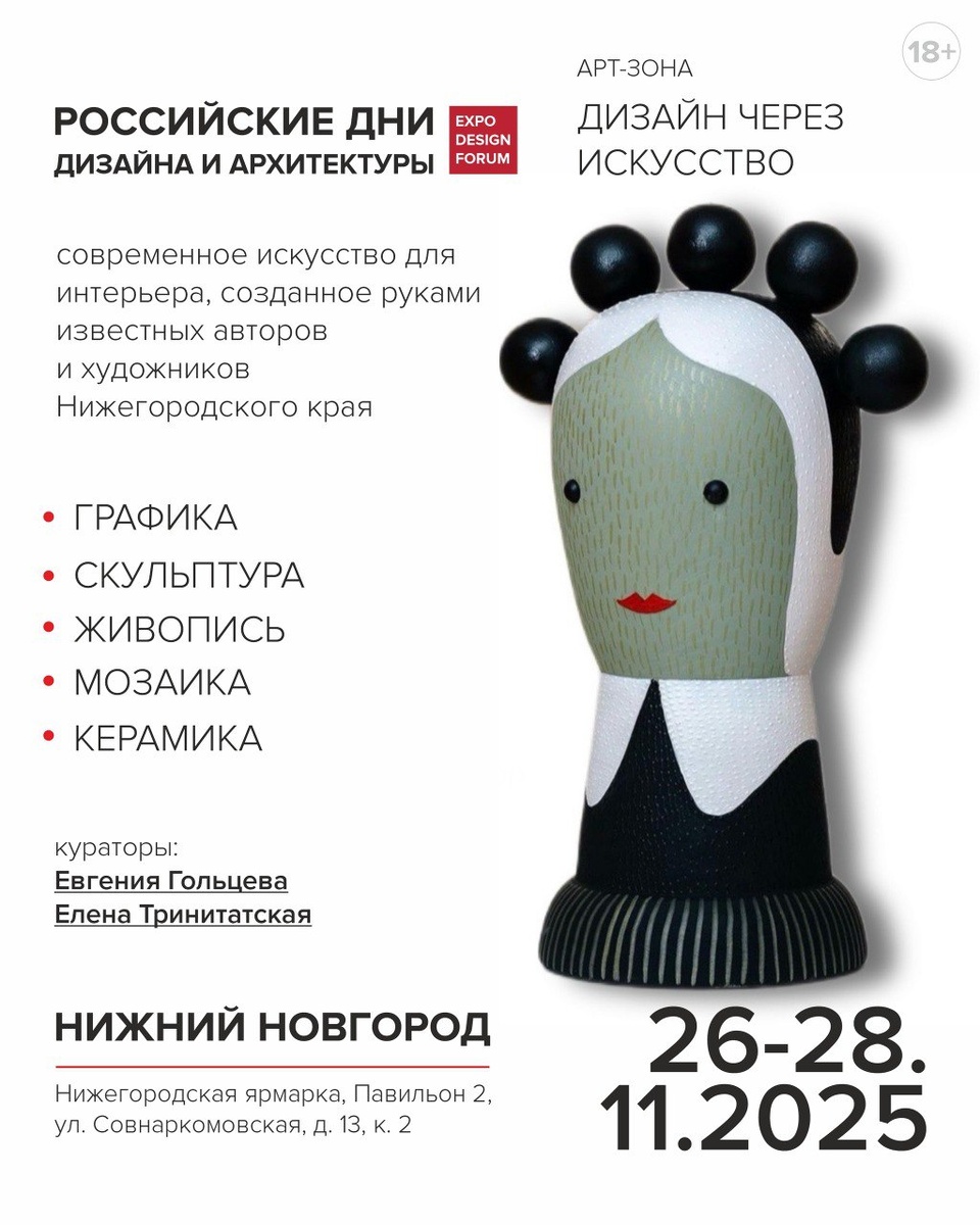 Выставка «Российские дни дизайна и архитектуры» Для гостей будет открыта арт-зона с работами нижегородских художников – авторы сами проведут экскурсии и расскажут, как рождаются их работы и почему они органично смотрятся в современных интерьерах. Бесплатный билет можно получить пройдя регистрацию 26 - 28 ноября | 10:00–19:00 (28 ноября до 17:00) Нижегородская ярмарка, Павильон №2 😄 Мероприятия Нижний Новгород. Я местный! 📱 Telegram | 📱 MAX