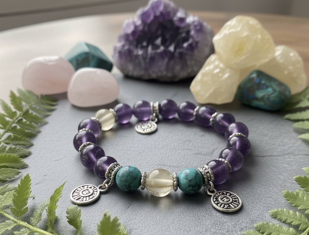 Цитрин, аметист и азурмалахит — это браслет для тех, кто понял: первый уровень пройден, пора идти глубже. Вы уже получаете ответы. Уже двигаетесь. Уже развиваетесь. Но где-то внутри чувствуете: это не всё. Есть что-то глубже. Что-то истинное.