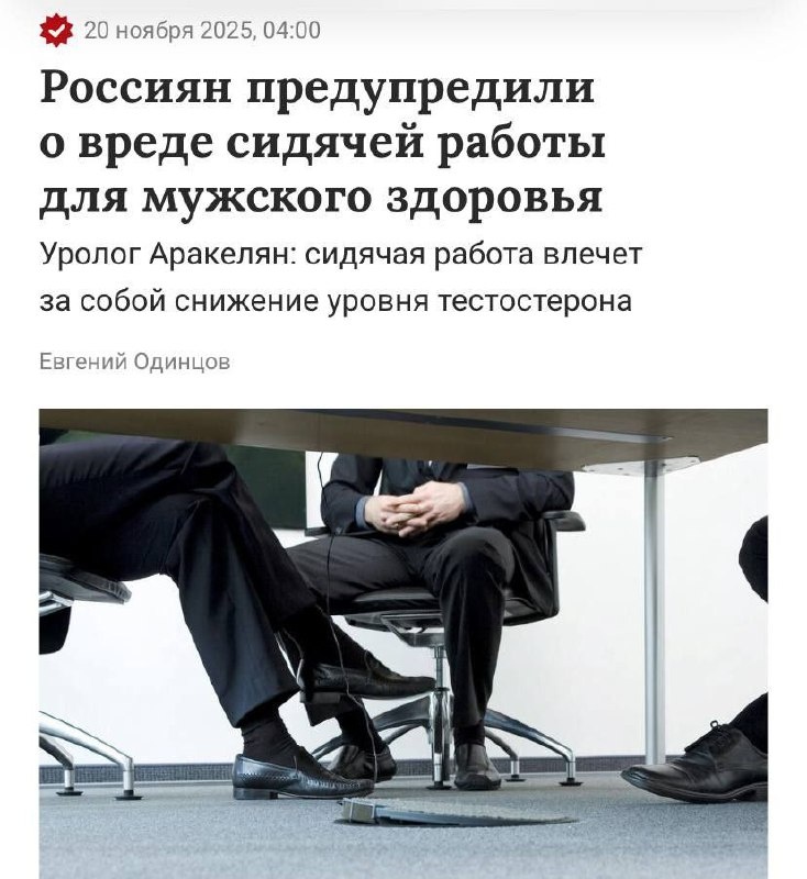 ⚠️ Сидячая работа убивает стояк у мужчин, предупреждают врачи