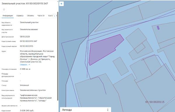 Название: Земельный участок с кадастровым номером 61:50:0020115:347, общей площадью 3500,0 кв.м. с местоположением: Российская Федерация, Ростовская область, муниципальное образование городской округ "Город Донецк", город Донецк, улица Урицкого, земельный участок 2Д, вид разрешенного использования: "нефтехимическая промышленность", "строительная промышленность", "склады". Канал: Госземля Ростовская область Область: обл Ростовская Район: г.о. город Донецк Населенный пункт: г Донецк, ул Урицкого Российская Федерация, Ростовская область, муниципальное образование городской округ "Город Донецк", город Донецк, улица Урицкого, земельный участок 2Д. Локация: Смотреть на карте ВРИ: Нефтехимическая промышленность Кадастровый номер: 61:50:0020115:347 Кадастровая стоимость: - Вид сделки: Аренда Площадь: 3500 м² Начальная цена: 190000.00 руб. Дата завершения: 12.12.2025 Подробнее: ГИС ТОРГИ #госземля #земляотгосударства #земля #земельныйучасток #земельныеторги #торги #аукцион #арендаземли #аренд