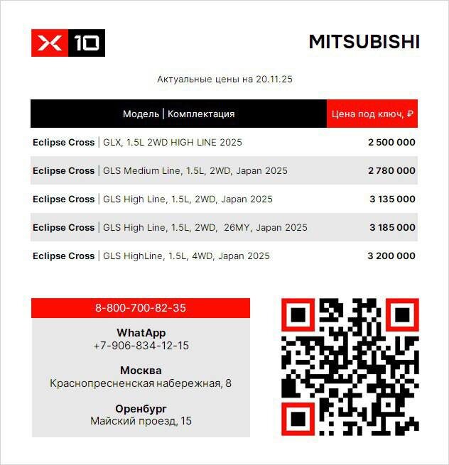 πΈΠΠ±Π½ΠΎΠ²ΠΈΠ»ΠΈ ΡΠ΅Π½Ρ Π½Π° Mitsubishi Eclipse Cross (2025