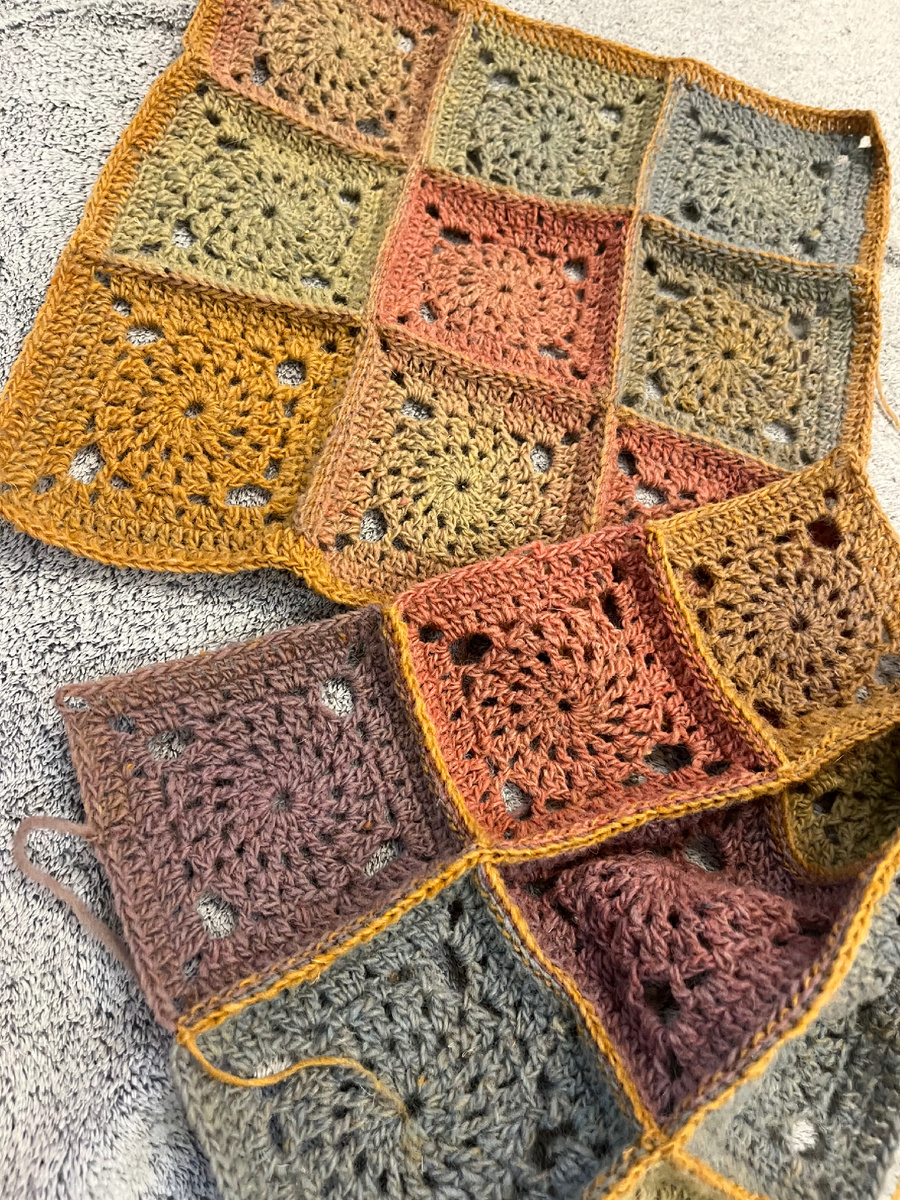 Я периодически показываю свое вязание, оно очень простое - носочки, иногда шапочки/снуды и прочие аксессуары, в последнее время вот увлеклась вязанием из мотивов. Вязание - это то, чем я с детского сада занималась параллельно с вышивкой. Иногда оно перетягивало на себя основное время в хобби, а чаще вышивка идет параллельно с вязанием. Это то, чем можно заняться перед сном, когда глазки уже устали, мозг тоже почти спит, а вроде бы полчасика еще есть). Не меньшее удовольствие это мне доставляет, жаль, что не разорваться). Еще летом я показывала мотивы из шерсти дундага - очень хотелось к осени связать атмосферное нечто, что украшало бы интерьер. В идеале - плед)). Но на него у меня терпения не хватило, как и пряжи - дундага нынче просто бессовестно дорогая. Навязала я мотивов, решила - быть подушкам. Купила внутренние части подушек на маркеплейсе. И только после сборки поняла, что не надо было брать белые🧐. Но уж как есть. Вчера собрала наконец вторую подушку, не прошло и полугода).