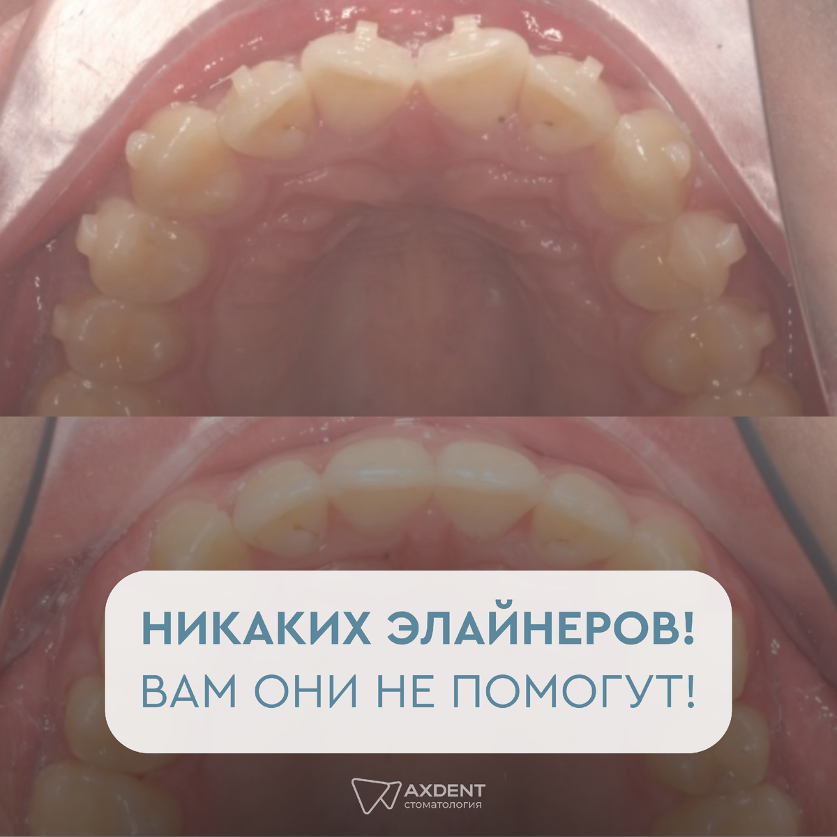 — «Либо ортогнатическая операция» Мы не удивились, услышав его историю. Многие коллеги в таких ситуациях, действительно, рекомендуют только брекеты или операцию. Но мы знаем: элайнеры — это не просто "капы для простых случаев". Это полноценный инструмент, которым можно решать сложные задачи, если уметь с ним работать. Наши ортодонты специально обучались работе со сложными случаями на элайнерах и понимают: В этом случае наш ортодонт Шахи Ахматовна: 14 месяцев — и отличный результат без брекетов, без хирургических винтов, без операции. Не потому что элайнеры "волшебные", а потому что мы умеем грамотно использовать их потенциал. P.S. Если вам тоже говорили «это невозможно», вероятно, вы просто не встретили своего ортодонта.