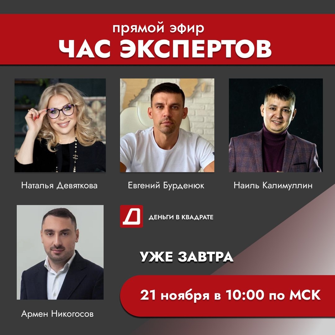 ⏰ ЧАС ЭКСПЕРТОВ УЖЕ ЗАВТРА Одна голова хорошо, а две лучше! Друзья, 21 ноября (ЗАВТРА) в 10:00 МСК мы снова выходим в традиционный эфир, чтобы разобрать реальные кейсы наших учеников. Вы увидите, как экспертный взгляд и правильный вопрос способны изменить судьбу объекта. ❓Что обсудим в эфире 🔸 Как превратить сложные объекты в доходные 🔸 Разберем реальные, труднореализуемые кейсы от наших учеников 🔸 Как инвестировать в коммерческую недвижимость с помощью кредитного плеча 🔸В связи с принятием новых налогов, как изменится жизнь брокеров ИП и самозанятых 🔸 Какие сети находятся в развитии Среди приглашенных экспертов: • Евгений Бурденюк — человек года Новосибирской области, СEO ГК "Отелит", председатель АМТЦ (Ассоциации малых торговых центров) @Burdenyuk • Наиль Калимуллин – Эксперт в области офисных помещений. Основатель и руководитель инвестиционно-управляющей компании "В квадрате" @Nail_Kalimullin • Армен Никогосов — эксперт в сфере кредитного финансирования — расскажет, как и