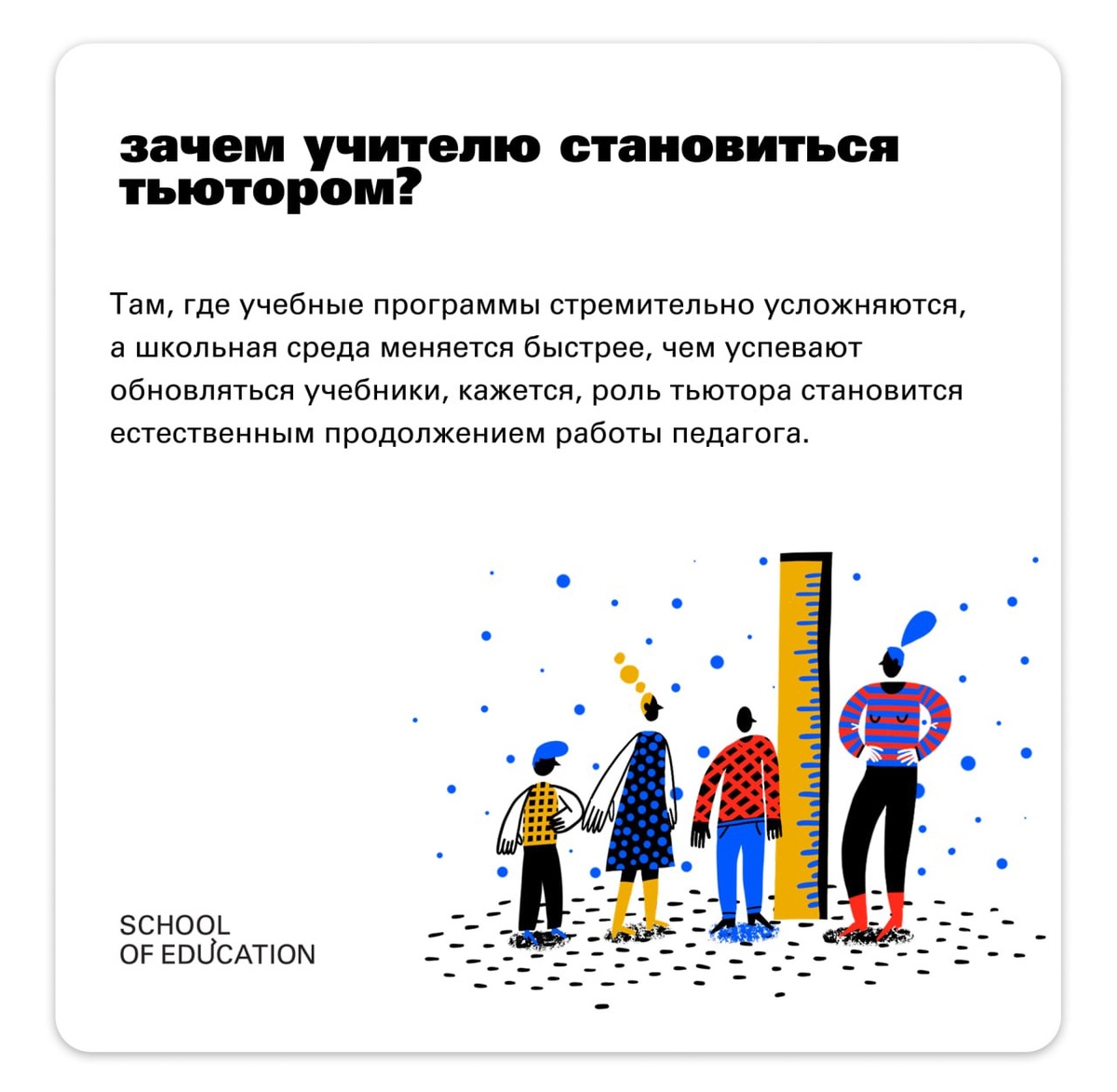 Зачем учителю становиться тьютором? Современное педагогическое сообщество находится в непрерывном поиске методов и форм взаимодействия, позволяющих учитывать индивидуальность учеников. Одним из форматов, набирающих популярность, становится тьюторское сопровождение. Почему все больше педагогов обращаются к тьюторской практике? Какие задачи она решает и как меняет работу учителя — для ученика и самой школы? Постарались ответить на эти вопросы в карточках. А саму методику осмысляем на программе «Индивидуальное тьюторское сопровождение». ➡️ Узнать больше