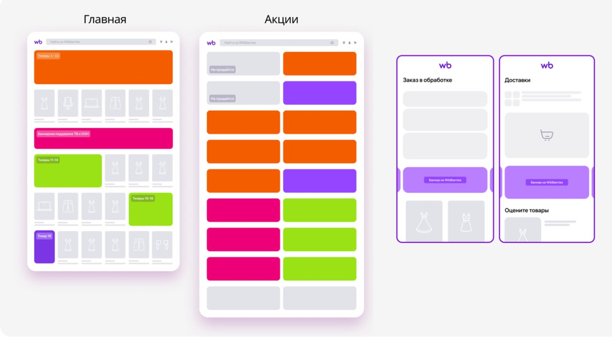 Вы заходите на Wildberries за кроссовками, а на главной странице вас встречает баннер с акцией на спортивные носки. Совпадение? Не думаем! У маркетплейса № 1 в России — 77,3 млн пользователей в месяц — реклама работает не наугад. Система помнит, что вы недавно искали кеды, добавляли рюкзак в избранное или покупали ботинки. И именно поэтому баннер с носками появился именно у вас. Какие баннеры работают на Wildberries: 🔹 слайдер на главной — самый заметный формат. Его видят больше 35 млн человек в день. Он показывается на всех типах устройств на стартовой странице и может содержать до 10 баннеров. CTR — 0,5–0,8%. 🔹 тизер на главной — вариант попроще, но не менее эффективный. 25 млн просмотров в сутки, CTR 0,3–0,8%. 🔹 раздел «Акции» — территория скидок. Баннеры и всплывающие окна работают как подсказка: «Эй, здесь выгодно!». 100 000+ просмотров в день, CTR до 1,5%. 🔹 личный кабинет и страницы заказов — пока клиент оформляет покупку, ему можно предложить то, что дополняет заказ. Охват