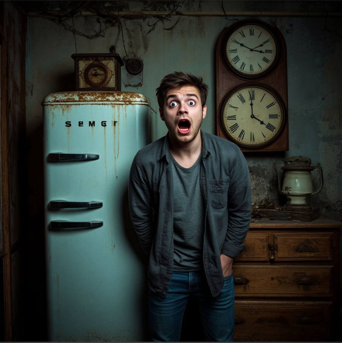 Пока ему оказывали первую помощь, сосед был живым, но очень слабым, я обошел квартиру... Увидел и старый телек на тумбочке у окна, и тот самый холодильник, который рычал как зверь... Все это казалось давным давно не рабочим... Стояли даже настенные часы! Все словно действительно застыло следом за хозяином квартиры!