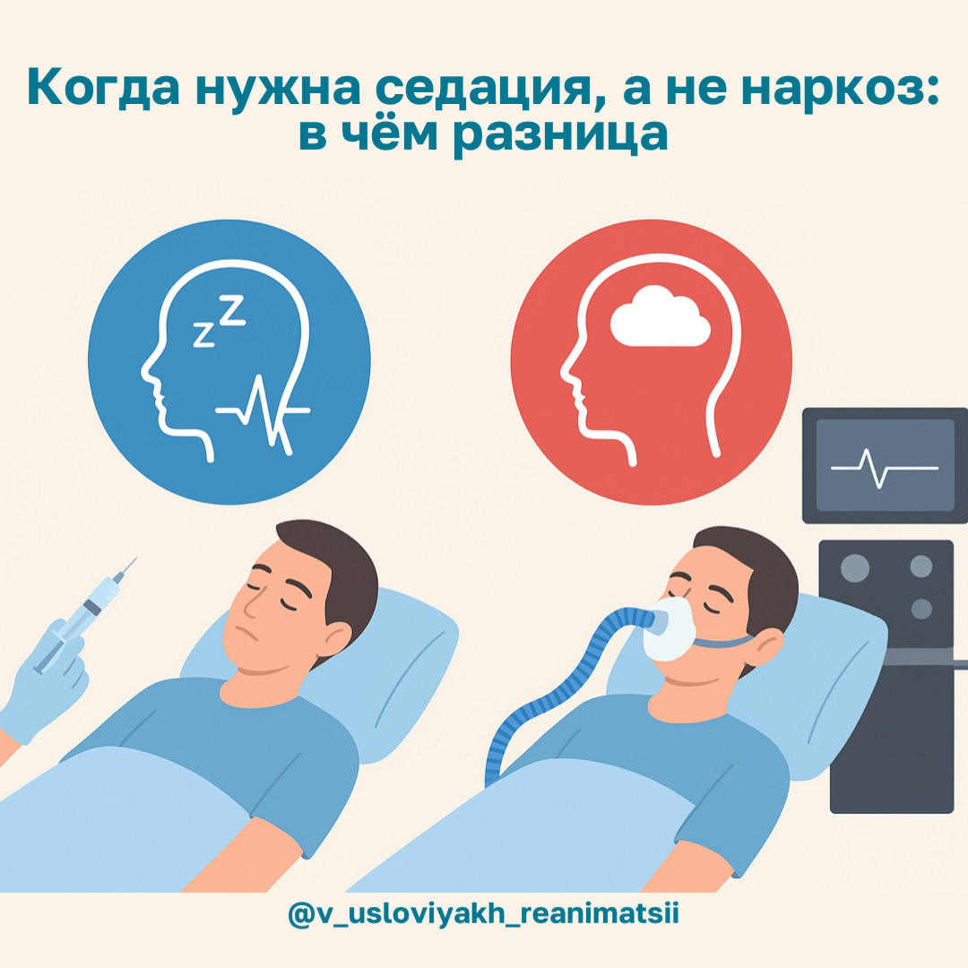 Седация — это фармакологическое снижение уровня сознания, которое существует в виде континуума: от минимальной (пациент спокоен, но бодр) до глубокой (пациент реагирует только на интенсивные стимулы, дыхание может быть нарушено). При глубокой седации граница между седацией и общим наркозом становится размыта.
