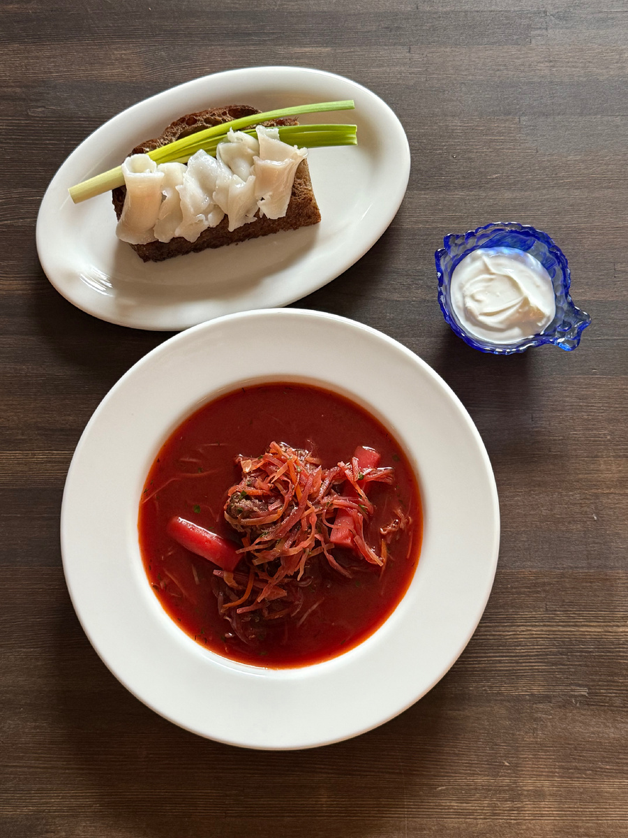 Лук репчатый - 120 гр Масло растительное - 100 гр Ребро говядина - 1 кг Картофель - 400 гр Свекла - 600 гр ( половина на фреш) Морковь - 200 гр Чеснок - 15 гр Томатная паста - 140 гр Молодая капуста - 300 гр Соль - 10 гр (по вкусу) Перец черный горошек - 3 гр Лавровый лист - 3 шт Вода - 3 л Петрушка - 20 гр Укроп - 20 Гр Мой любимый рецепт борща Поделюсь простым рецептом борща, который лично мне очень нравится. Вариантов этого блюда существует множество, и у каждого есть свои секреты. Сегодня расскажу о том, как готовлю его я. Основа — хорошие продукты Всё начинается с выбора ингредиентов. Если взять самые сладкие и сочные овощи, успех гарантирован. Я, например, использую томатную пасту от «ВкусВилл» — она больше сладкая и совсем не кислит. Бульон варю на говяжьих рёбрышках — получается очень насыщенным, что создает отличную основу. Подготовка и обжарка овощей Лук режу перьями и обжариваю до золотистого цвета, затем слегка томлю на медленном огне. Морковь и свеклу нареза