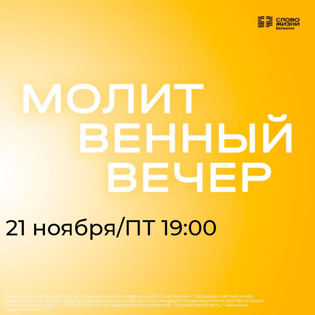 Приглашаем вас завтра, 21 ноября, в 19:00 на молитвенный вечер в церкви! #wolrus_balashiha