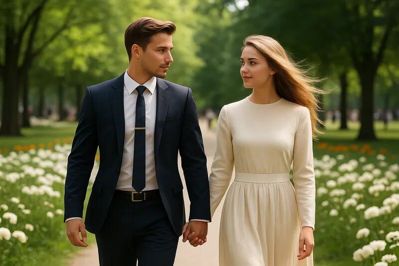 Со стороны всё выглядело идеально: мужчина бережно поддерживает свою даму, на лицах – спокойные улыбки. Но только она знала, что эта “бережность” больше похожа на тиски. Каждое прикосновение, казавшееся посторонним нежным, на деле было твёрдым, почти властным. Она уже привыкла не показывать, как ей неудобно, как хочется высвободить руку, но приходится терпеть.