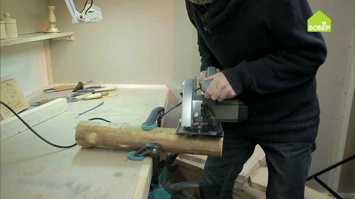 Профессиональный резчик по дереву Михаил Славинский покажет, как из самого обычного полена сделать очень полезную вещь для кухни, которая пригодится каждой хозяйке! Установите полено в тиски и при помощи циркулярной пилы отпилите заготовку, из которой будет изготовлен боёк молотка. При помощи карандаша разметьте отверстие, в которое войдёт ручка. Возьмите брусок и при помощи пологой стамески снимите углы будущей ручки: сделайте насечки, переверните заготовку и срежьте лишнее. При помощи шуруповёрта и сверла сделайте в заготовке для бойка множество отверстий по нанесённой разметке. Используя полукруглую стамеску, удалите излишки материала из отверстия под ручку. Стамеской 10 мм сделайте сквозное отверстие. Один край ручки обработайте стамеской, сделав чуть тоньше другого, чтобы можно было насадить боёк. Насадите ручку на боёк. Пологой стамеской очистите боёк от коры. Богородским ножом срежьте углы на боковых сторонах бойка. Возьмите полукруглую стамеску 10 мм и нарежьте борозды на одн