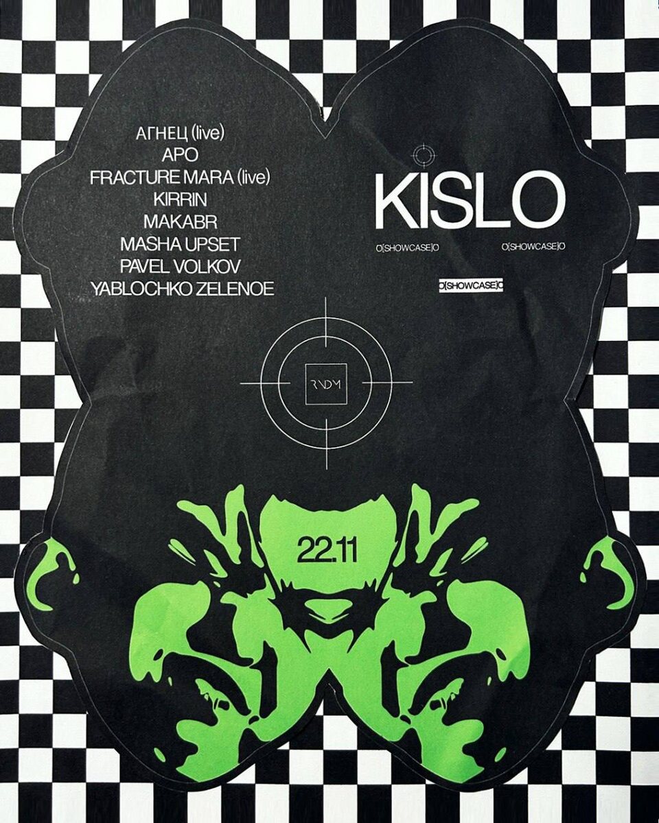 KISLO [SHOWCASE] RNDM 22 ноября каждое мероприятие, каждая форма — это мутация одной и той же сущности. на этот раз KISLO возвращается в любимый клуб с разрывом. сольный техно-ивент с резидентами и приглашённым гостем: мы пройдём по каждой грани прямой бочки. АГНЕЦ (live) APO FRACTURE MARA (live) KIRRIN MAKABR MASHA UPSET PAVEL VOLKOV YABLOCHKO ZELENOE вас ждёт инсталляция FOG — неуловимая, но плотная, как бетонная пыль, зайдя в которую, ты исчезнешь. artwork by @mashaupset 🏁 Билеты 📆 22 ноября, в 23:00 📍 RNDM, Москва, Наставнический пер., 13/15с3