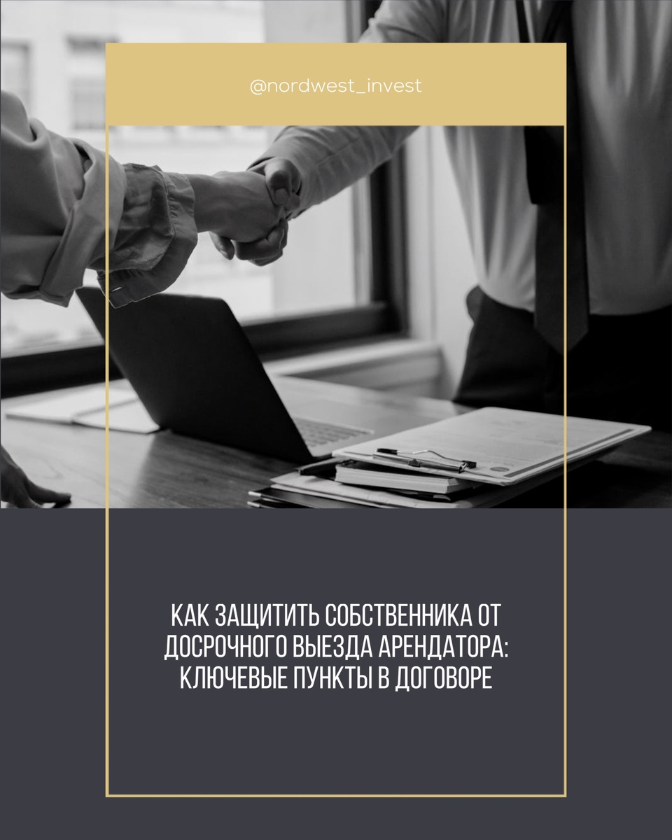 В коммерческой недвижимости досрочный выезд арендатора — одна из самых частых и дорогих проблем. Собственник теряет деньги не в моменте, а в периоде простоя, который может съесть 1–3 месяца дохода. Разбираем, какие пункты нужно предусмотреть, чтобы минимизировать убытки и не остаться с пустым помещением. 1. Минимальный срок фактического пользования помещением Это ключевой инструмент. В договоре указывается: арендатор может расторгнуть договор только после минимального периода пользования (например, 6 или 12 месяцев). Иначе — штраф. 2. Уведомление за 30–90 дней Правильный период уведомления — это время, которое собственнику нужно, чтобы найти нового арендатора. Стандарт: • 30 дней — минимум, годится для маленьких площадей. • 60–90 дней — оптимально для коммерции 50–200 м². Чем больше площадь — тем дольше срок уведомления. 3. Штраф за досрочное расторжение Это нормальная практика, если ее грамотно прописать. Формат: 1–2 месячные арендные платы, либо компенсация в размере оставше
