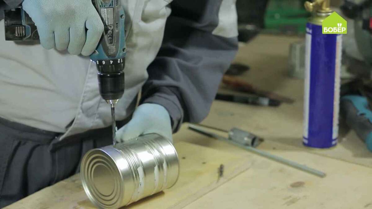 Оказывается, даже в самой обычной мастерской можно довольно быстро организовать мини-кузницу. Наш мастер покажет, что нужно делать! Возьмите консервную банку и с одной стороны по центру сделайте два отверстия под болты. С другой стороны банки сделайте отверстие под металлический сгон. Вставьте сгон в получившееся отверстие. Сделайте каркас для заливки алебастра, установив внутрь банки втулку от бумажных полотенец. Приготовьте смесь: насыпьте небольшое количество алебастра в ведро и разбавьте водой до консистенции сметаны. В отверстия в банке вставьте болты шляпками внутрь и закрепите при помощи гаек. Установите втулку, заполните свободное пространство смесью и подождите полчаса, чтобы алебастр застыл. Прикрепите к фанере уголки при помощи саморезов. Прикрепите горн к площадке. Срежьте лишний картон. При помощи сверла уберите лишний алебастр из трубки. Проведите обжиг горна: в сгон установите газовую горелку, пустите газ и подожгите. Обжигайте горн, пока пламя не станет красным. Тогда