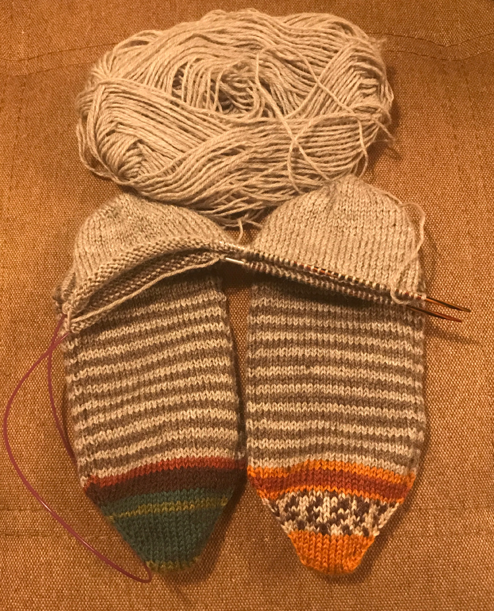 «Ошеломительные» успехи в вязании давно начатых носков... ☺️ Кое-как огорила пятки. Не знаю, с чем связано такое медленное вязание довольно мелких аксессуаров. Постоянно какие-то отвлекающие дела находятся. 🤗 Например, с вдохновительной целью решила пересмотреть свои носочные коллекции и вспомнить, как вообще начиналась моя носочная история. Как сейчас помню момент, когда я полюбила вязать носки и начала создавать носочные коллекции. Также, как сейчас мне не хочется ничего, кроме мозаики вязать, тогда я загорелась вязанием носков. 😍 Связав две пары носков из совсем не носочной пряжи, оставшейся от других процессов, я будто нажала кнопку режима «обожаю вязать носки». 😂 Сделав эти первые пары разными скорее ради забавы, я поняла, что вязать носки с изюминкой, делая их разными в пределах одной пары, - это не только необычно и очень интересно, но и очень мне по душе. Именно тогда зародился мой большой носочный проект «РАЗНО» - РАЗные НОски, который актуален по сей день. 😊 Сначала