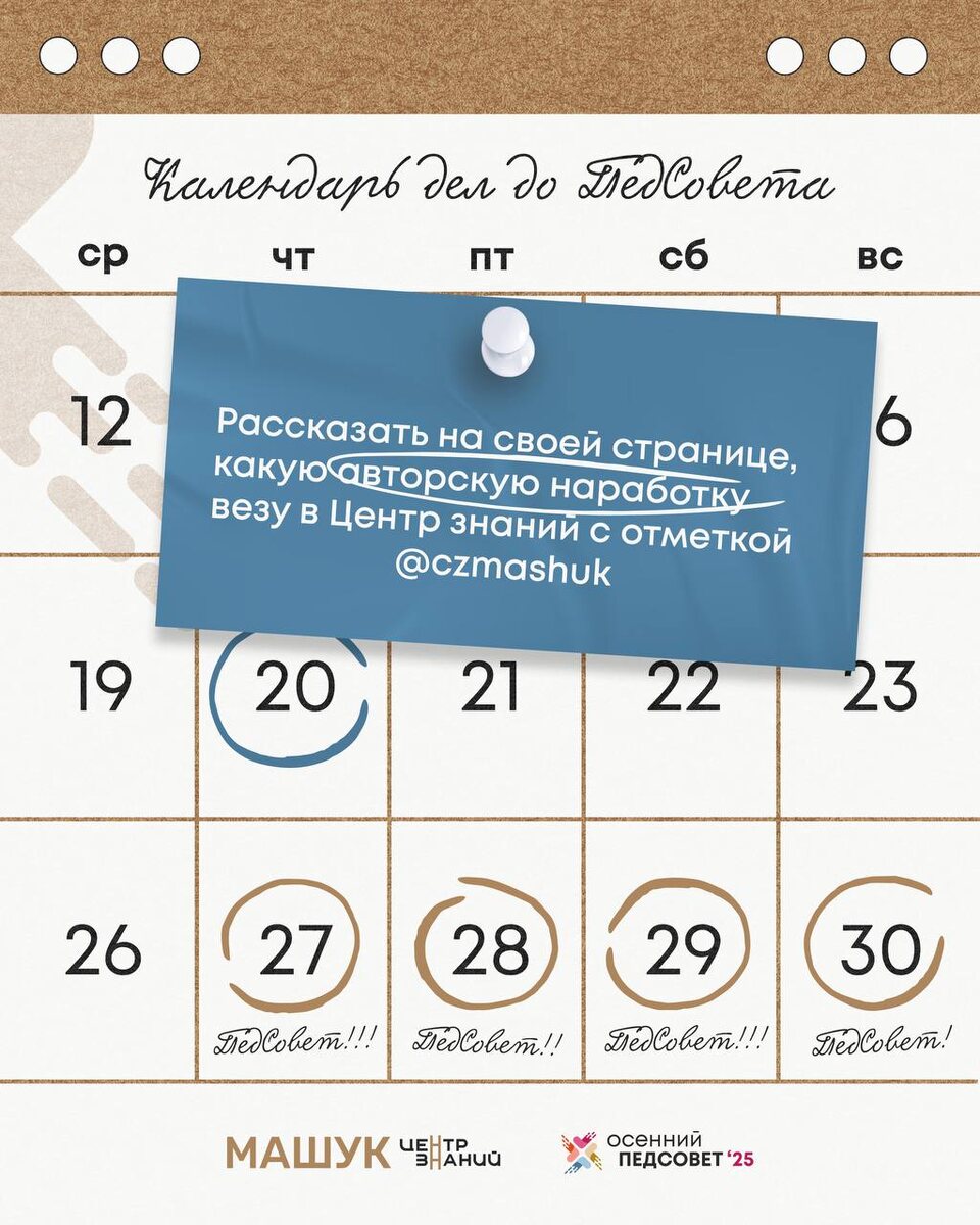 — Педсоветовцы, готовы? 🧑🏫 — Всегда готовы! Уже совсем скоро мы встретимся с вами на Осеннем ПедСовете в Центре знаний «Машук», чтобы не только обменяться опытом, но и найти новые идеи для своей работы. С наработкой участников прошлых сезонов вы уже познакомились в предыдущем посте. А теперь пришло время проявить себя! 👇 Расскажите в комментариях, какую авторскую наработку вы планируете привезти на ПедСовет. Пусть ваши идеи станут вдохновением для коллег ещё до начала программы.✏️ 💙 Ждём с нетерпением и считаем дни до встречи!
