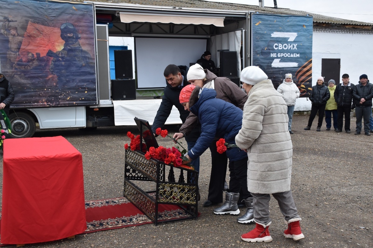 Каракулевцы простились с Ильдаром Латыповым Сегодня в Каракулево состоялся прощальный митинг. Сельчане проводили в последний путь Ильдара Латыпова, погибшего при выполнении боевых задач в зоне проведения специальной военной операции. Проститься с земляком прибыли глава Администрации района Айдар Абдуллин, председатель общественной организации ветеранов боевых действий Эльмир Шафиков, представители военкомата, боевых братств, СП Ариевский сельсовет, руководители организаций, участники боевых действий, ветераны СВО, жители сел. Ильдар Латыпов родился в г. Куса Челябинской области в 1982 году. Учился в Абзаевской школе, Дуванском аграрном техникуме, служил в армии. На СВО ушел добровольцем. Матери бойца передан российский флаг в знак признания заслуг перед Отечеством. Ильдара Латыпова похоронили со всеми воинскими почестями. У него остались дочь и сын. Фото: пресс-центр Администрации района.
