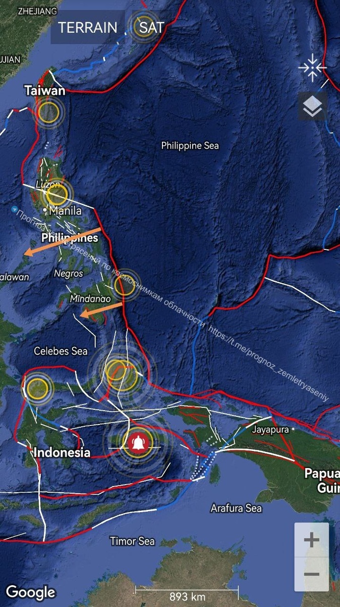 В ответ на пост За минувшие часы дегазация по зоне на юго-западе Филиппинской плиты на уровне М8+ продолжилась. Западная часть ОСТИ сместилась за Филиппины. ====== Over the past hours, degassing continued in the zone in the southwest of the Philippine Plate at the M8+ level. The western part of the CSTI has shifted beyond the Philippines.