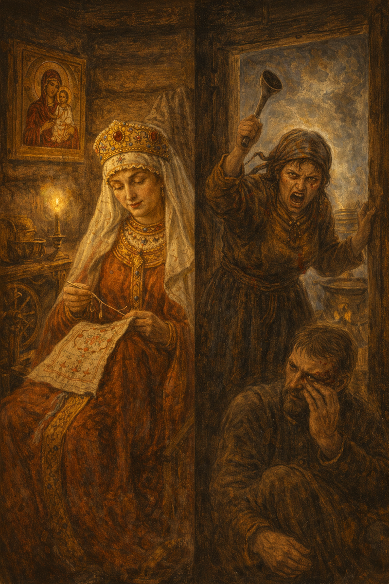 В древнерусской литературе, от летописей до поучений, постоянно встречается противопоставление двух женских образов — «доброй» и «злой» жены. Эта тема, словно «красная нить», пронизывает всю культуру Средневековья и раннего Нового времени, служа своего рода моральным компасом для общества.