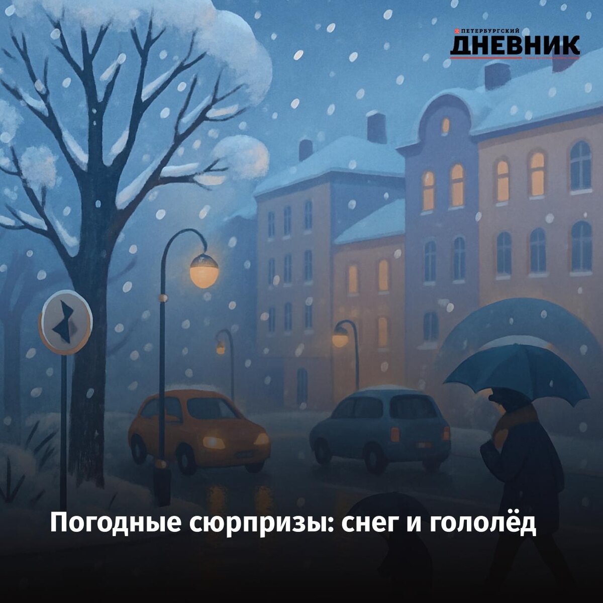 🌨️ В Петербурге ожидается ухудшение погоды По данным Северо-Западного УГМС, 21 ноября в городе возможны сложные погодные условия. Местами прогнозируется налипание мокрого снега, а на дорогах — гололедица. Главное управление МЧС России по Санкт-Петербургу просит горожан быть внимательнее на улице и за рулём: покрытие может стать скользким уже в утренние часы. Дорожные и садово-парковые предприятия готовы к любым неблагоприятным погодным условиям в графике 24/7. Особое внимание всегда уделяется пешеходным зонам, остановкам транспорта, станциям метро и объектам социальной инфраструктуры. Фото: DALL-E Подписаться на Петербургский дневник в MAX