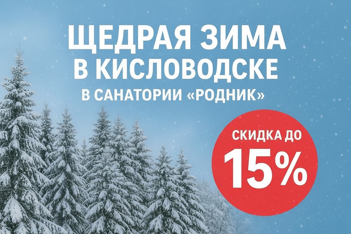 Зима на Кавказских Минеральных Водах — это не только сказочные пейзажи и мягкий климат, но и отличная возможность укрепить здоровье и перезагрузиться перед новым годом. Пока другие только присматриваются к отдыху, у вас есть шанс забронировать проживание в одном из самых популярных санаториев Кисловодска — "Родник" — по выгодной зимней акции со скидкой до 15 %. Такая возможность появляется нечасто, и именно сейчас — лучшее время, чтобы выбрать лучший номер и спланировать полезный отдых в лечебном климате КМВ. Скидка действует для туристов, которые выбирают "Базовую" и "Премиум" программы при проживании в периоды: и при бронировании до 26.01.2026. Все категории номеров участвуют в акции — можно брать любой! Длительность: от 5 дней Подойдёт тем, кто хочет поднять иммунитет и пройти комплексное восстановление организма. Показания включают заболевания сердца и сосудов, легких, нервной системы, суставов и позвоночника. В программу при отсутствии противопоказаний входят: Длительность: от 4 д