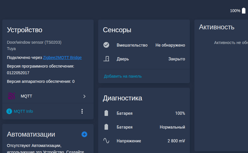 Датчики открытия входной двери и окон установлены, поэтому неплохо было бы сделать в NodeRed автоматизацию по обработке их открытия при отсутствии хозяина дома. Заодно напомним об открытом окне при уходе. Возьму для примера пару датчиков открытия окна, остальные (в том числе и датчик открытия двери) обрабатываются алкоголично. Тут логика простая: инициализация работы потока происходит при выходе метки персоны из зоны обнаружения, а потом проверяются состояния нужных датчиков и выполняются какие-то действия. В предыдущей статье мы создали поток "При уходе". Дабы не плодить кучу потоков, воспользуемся им. Добавим в него узел "current state", который узнает состояние одного из датчиков открытия окна. В Настройках->Устройствах HA, узнаем Entity_ID нужных нам датчиков или же выбираем из выпадающего списка в настройках узла, появляющегося при начале набора названия. С помощью узлов "debug" и "inject", которые потом удалим из потока, проверяем свое предположение, что в случае, когда окно закр