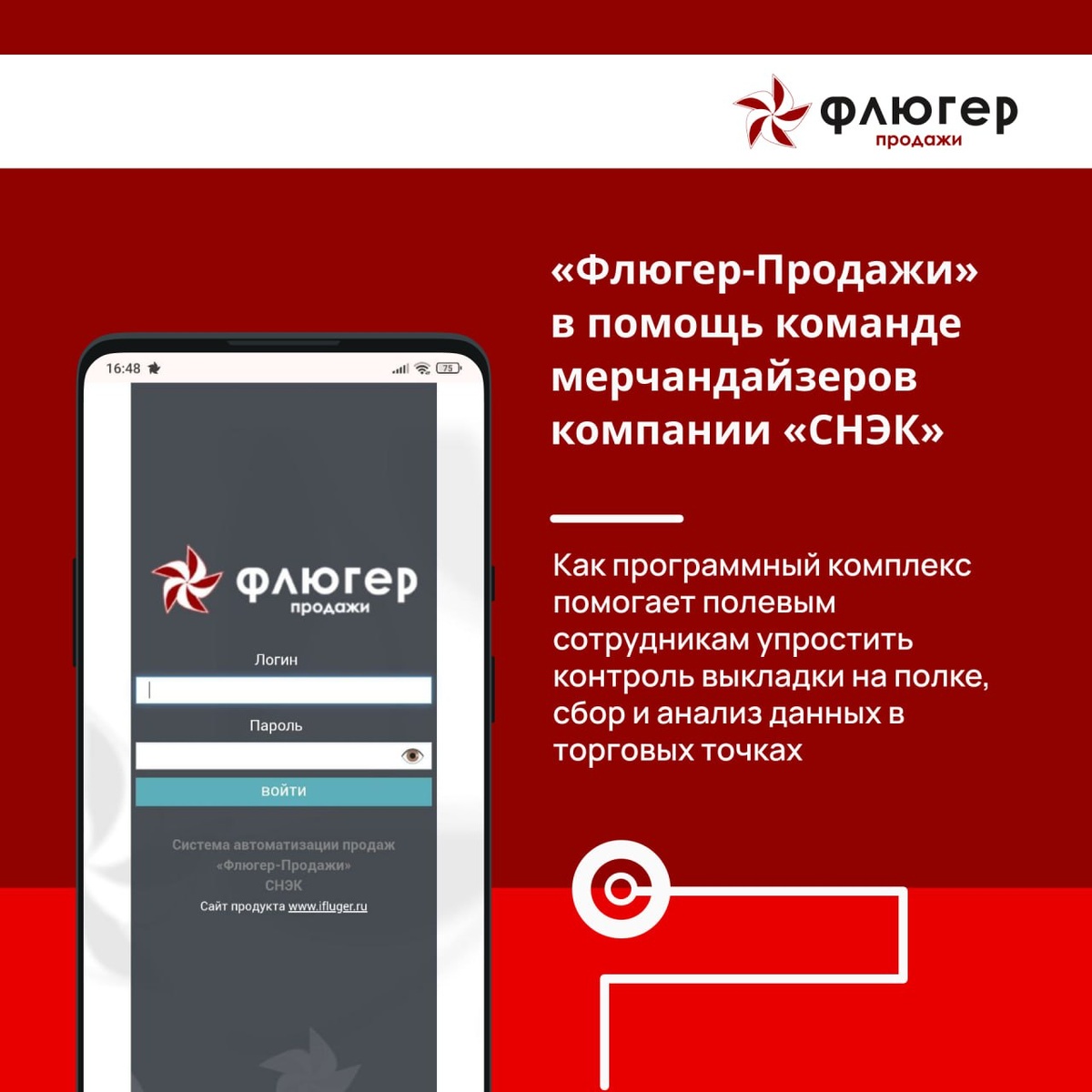Автоматизация работы полевых сотрудников компании «СНЭК» Компания «СНЭК» — производитель и поставщик снековой продукции, занимающийся оптово-розничной торговлей товарами для быстрого перекуса. Предприятие расположено в Калужской области и сотрудничает с торговыми сетями и дистрибьюторами более чем в 30 регионах России. Для повышения эффективности работы мерчандайзеров и прозрачности торговых процессов компания внедрила программный комплекс «Флюгер-Продажи». Решение позволило автоматизировать процессы, благодаря чему команда «СНЭК» теперь оперативно получает достоверные данные и принимает управленческие решения без лишней рутины. В рамках проекта были решены следующие задачи: 🔹 мониторинг посещений торговых точек; 🔹 фотоотчёты по выкладке и ассортименту; 🔹 анализ показателей наличия продукции и цен конкурентов; 🔹 контроль полочного пространства; 🔹 отображение на карте маршрута мерчандайзера, и фиксация его отклонений; В рамках внедрения системы компания воспользовалась услугой