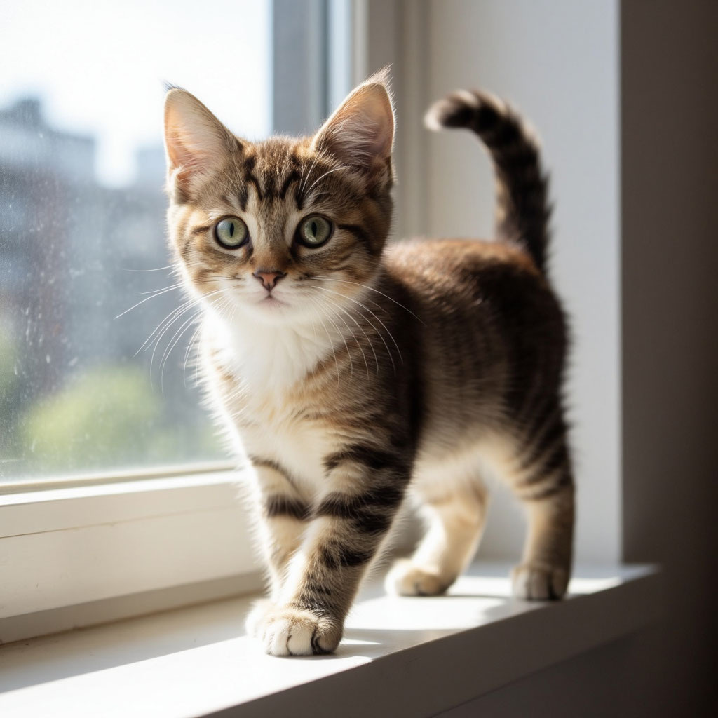 Родом из Японии, возраст породы — более 1000 лет. Упоминается в древних легендах и японских гравюрах («укиё-э»). Считается символом удачи — особенно трёхцветные (ми-кэ) кошки. Бобтейл означает «короткий хвост» — у этой породы он уникален у каждой особи, как отпечаток пальца. Хвост: Короткий (5–13 см), изогнутый, пушистый, напоминает цветок или помпон. Никогда не бывает прямым. Телосложение: Стройное, грациозное, с длинными лапами и высокой задней частью (как у зайца). Голова: Треугольная, с высокими скулами. Уши: Большие, широко поставленные, слегка наклонены вперёд. Шерсть: Может быть короткой или длинной (longhair variant), но всегда шелковистой и без подшерстка. Окрасы: Любые, но ми-кэ (белый + чёрный + рыжий) — самый знаменитый. Активная, игривая, любопытная — обожает прыгать, бегать, изучать дом. Голосистая — имеет мелодичный, почти «певческий» голос. Общительная и дружелюбная — легко уживается с детьми, собаками и другими кошками. Интеллектуальная — быстро учит команды, любит го
