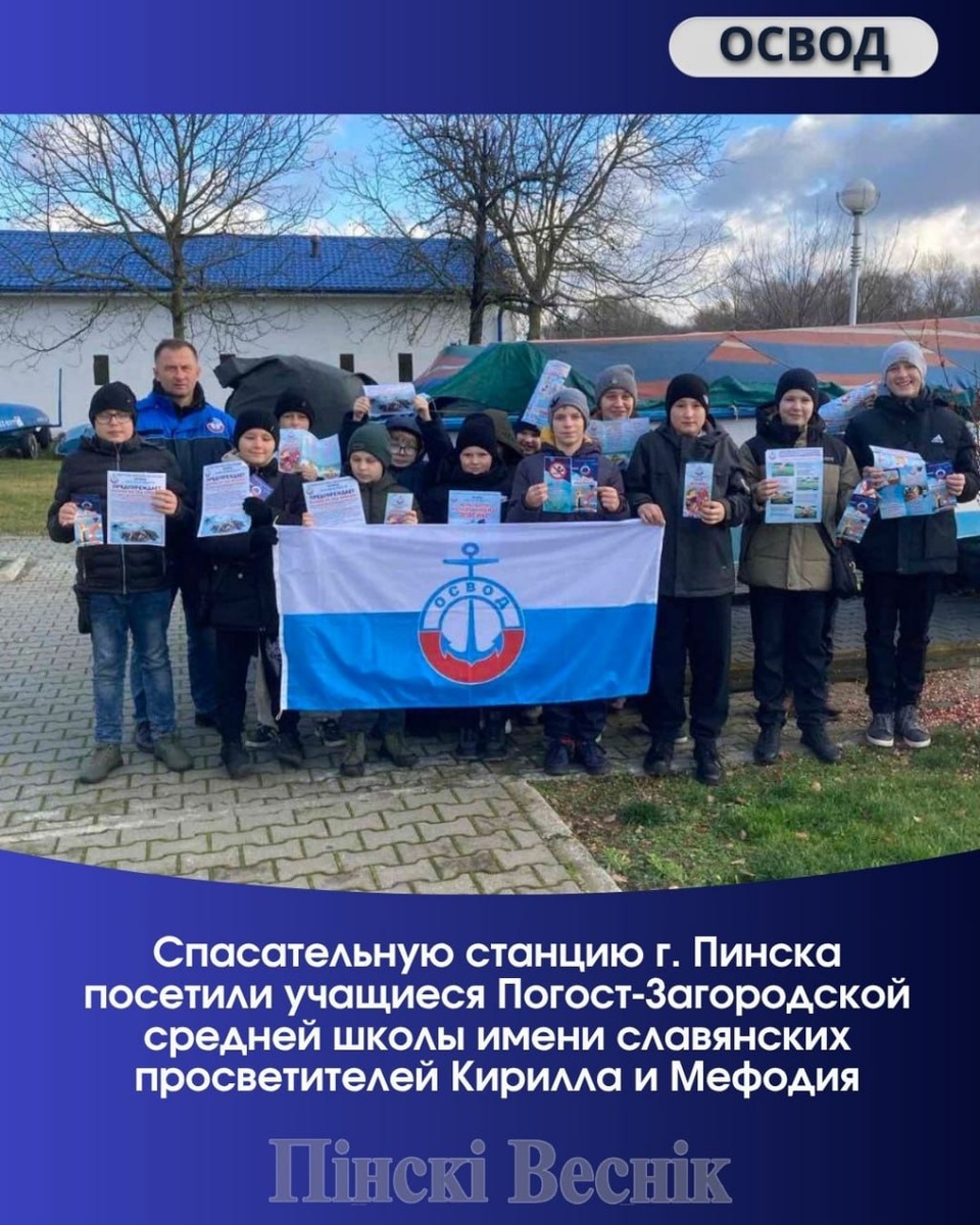1️⃣1️⃣3️⃣1️⃣5️⃣ 📎Спасательную станцию г. Пинска посетили учащиеся Погост-Загородской средней школы имени славянских просветителей Кирилла и Мефодия ▶️Старший матрос-спасатель Пинской РО ОСВОД Федор Машлякевич напомнил основные правила безопасности на воде в летний и зимний периоды, рассказал статистику и причины утоплений. В беседе с ребятами он обратил внимание на толщину льда, при которой разрешен выход на зимний водоем, рассказал об опасных местах даже в сильные морозы, алгоритме действий при попадании в полынью. 📍📍@Пинский Вестник 📱ЮТУБ 📱САЙТ 📱ИНСТ 📱ВК 📱ОК 📱ФЕ 📱TikTok 📱Прислать новость