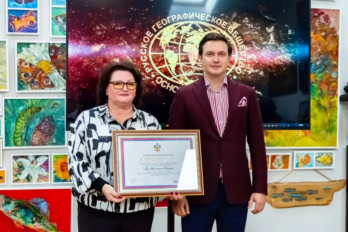 🏆 Директор Детского эколого-биологического центра города Крымска, председатель Крымского отделения Русского географического общества Валентина Петровна Бут получила благодарность от губернатора Краснодарского края. Награда вручена за успешную организацию и реализацию социально значимых и просветительских проектов «Открываем Россию заново» в Крымском районе. В ходе мероприятий, реализованных в рамках проекта, школьники познакомились с охраняемыми территориями России. Они узнали о национальных парках, заповедниках, заказниках, памятниках природы, ботанических и дендрологических садах, а также о памятниках всемирного наследия. 📲 Подписывайтесь на наш канал в МАХ