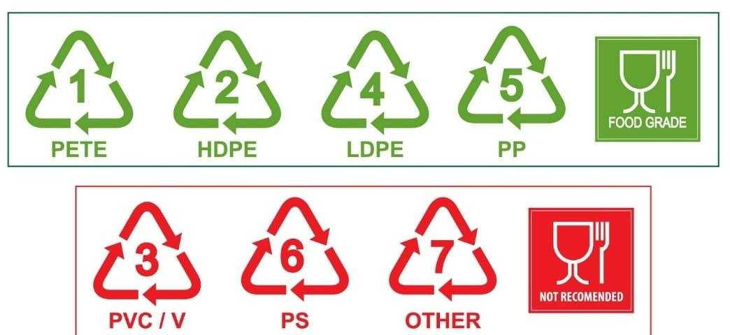- Избегайте PVC (3) и PS (6) для любых пищевых целей, а особенно для горячей пищи.