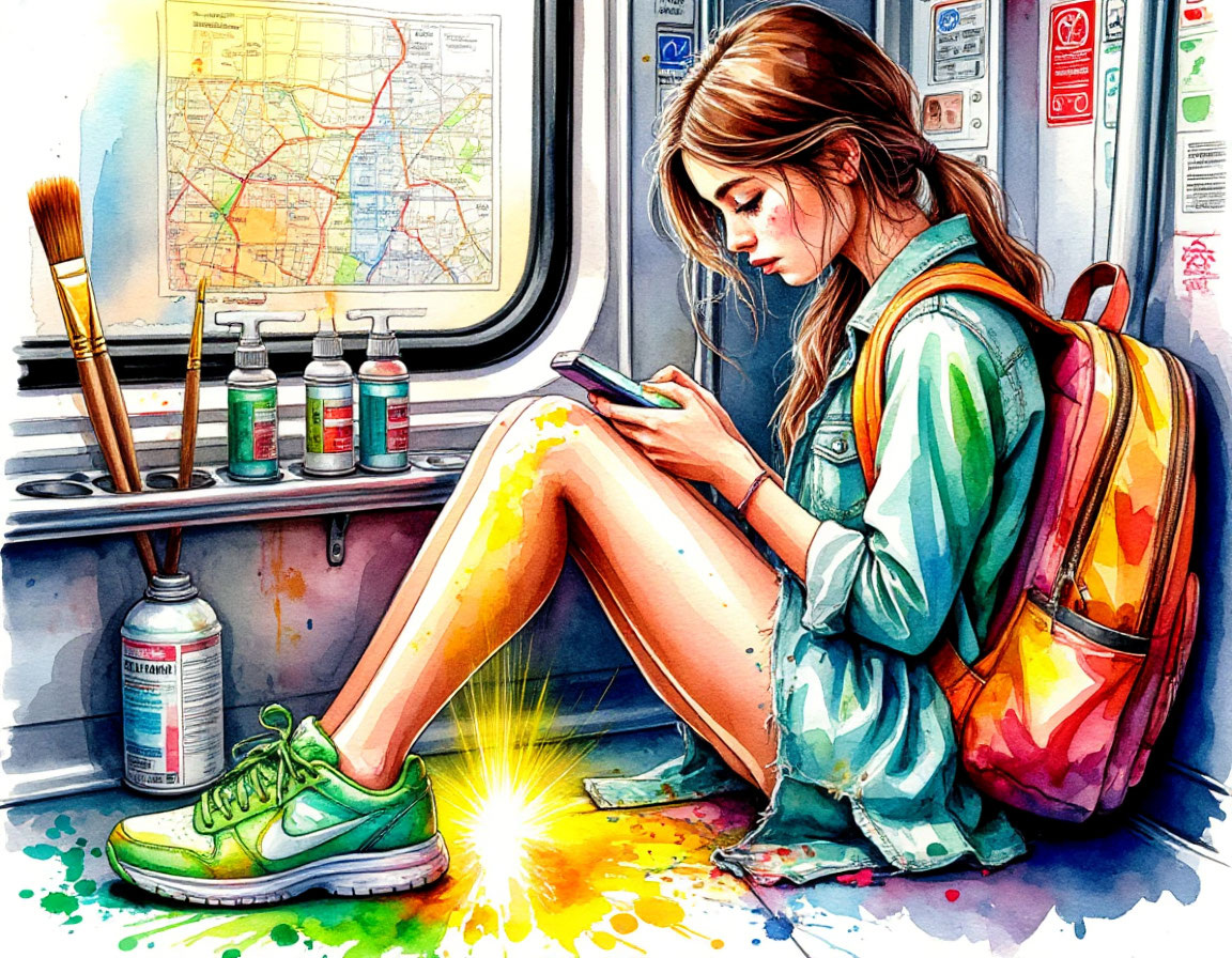 Из полуоткрытого рюкзака торчали кисти разных размеров. Стопка бумажных салфеток. Баллончик с каким-то спреем — скорее всего, закрепитель. И краешек папки для эскизов, измятой и исписанной с краев какими-то пометками.