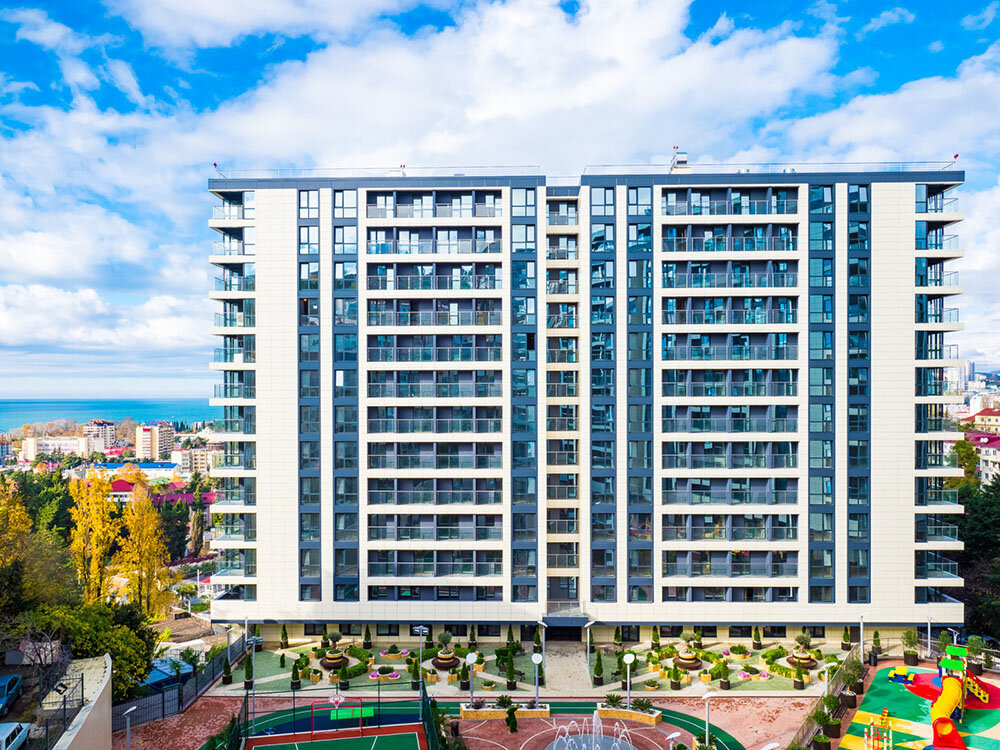 ЖК Сокол Сочи занимает уникальное положение — он расположен буквально на границе между Центральным районом и Завокзальным микрорайоном города. Это своеобразный мост между двумя популярными локациями; по сути, оба статуса можно смело присвоить комплексу. Проект реализован компанией ДЕСО — признанным экспертом по строительству домов бизнес-класса (ранее известна как Метрополис ). Сегодня её новые объекты уже относятся к элитному сегменту, но об этом в другой раз. В Соколе применены современные материалы и технологии: долговечные фасады, панорамные окна, стильные подъезды. Придомовая территория благоустроена: есть спортивные и детские площадки, подземный паркинг, а также красивый фонтан и символическую статую сокола. Локация комплекса — одна из лучших: до Навагинской улицы пешком всего около 10 минут, все главные объекты инфраструктуры находятся буквально под рукой. Квартир в продаже немного, а планировки эргономичны и рассчитаны на комфортную городскую жизнь. Найти свободное предложен