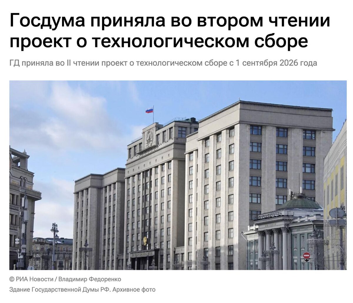 ⚡️ Госдума приняла закон о «технологическом сборе» Это сбор за ввоз или производство в РФ продукции с электронной компонентной базой. При этом максимальный размер сбора не превысит 5000 руб. за каждый компонент или единицу продукции. Если хотели купить что-то, покупайте сейчас — потому будет еще дороже… Источник