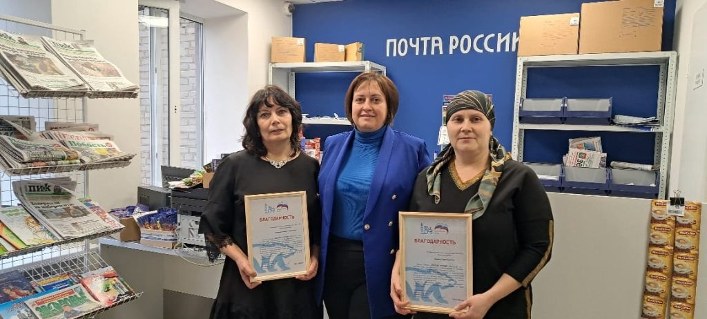 Сельские почтальоны также отмечены за участие в благоустройстве территорий В Пиховкинском сельском поселении почтальоны Светлана Юдакова, Заира Закаева и Нона Пукита получили благодарности от партии «Единая Россия» и проекта «Российское село» за активное участие во Всероссийском конкурсе «Земский почтальон». Благодарности вручила глава администрации поселения Татьяна Елисеева. «Мы высоко ценим Ваш труд, честную и добросовестную работу. Почтальон, особенно в сельской местности, всегда приносит не только почту, но и частичку тепла в каждый дом«, — отметила организаторы мероприятия. Также была отмечена активная гражданская позиция почтальонов в вопросах благоустройства сельских территорий и участие в волонтерских инициативах. В завершение церемонии почтальонам пожелали дальнейших профессиональных успехов и новых достижений в общественной деятельности на благо Донского края.
