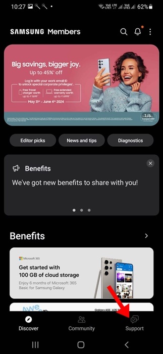 3. Запустите приложение Samsung Members и войдите в свою учетную запись Samsung.