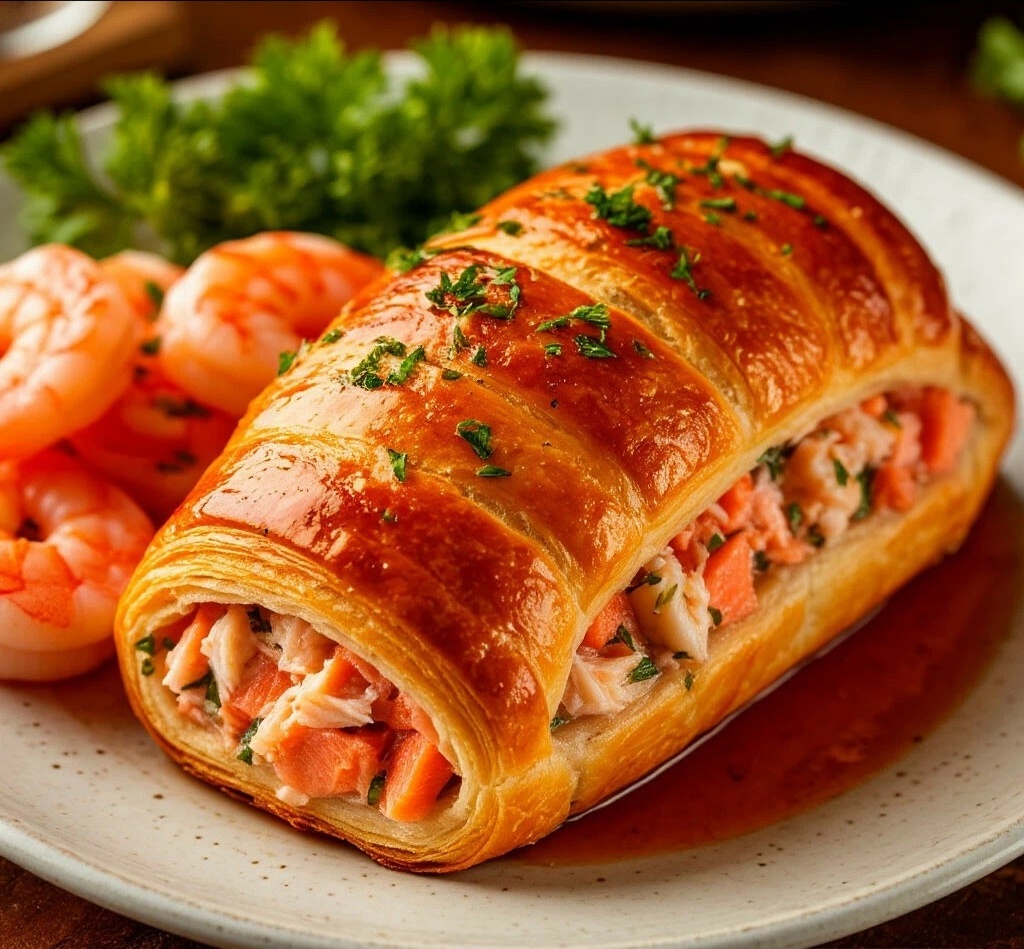 НЕСЛАДКАЯ ВЫПЕЧКА — КУЛЕБЯКА С ЛОСОСЕМ И КРАБАМИ Мяу, мои пушистые ценители высокой кухни! 😺 Эта кулебяка — настоящий царский пирог! Нежное слоеное тесто, сочная начинка из лосося и крабового мяса... Это блюдо для особенного случая! 🥧🦀 КУЛЕБЯКА С ЛОСОСЕМ И КРАБАМИ ИНГРЕДИЕНТЫ: 🧾 · Тесто слоеное дрожжевое – 500 г · Филе лосося – 200 г · Мясо крабовое – 150 г · Креветки – 100 г · Лук репчатый – 1 шт. · Яйцо – 2 шт. · Укроп – 20 г · Специи – по вкусу ВРЕМЯ ПРИГОТОВЛЕНИЯ: ⏰ 1 час 20 минут СЛОЖНОСТЬ:🐾🎩 Высший пилотаж ПОШАГОВЫЙ РЕЦЕПТ: 👩🍳 1. Тесто разморозьте. 2. Яйца отварите, порубите. 3. Лук обжарьте. 4. Лосось и крабовое мясо нарежьте кубиками. 5. Смешайте все ингредиенты для начинки. 6. Раскатайте тесто, выложите начинку. 7. Защипните «косичкой». 8. Смажьте яйцом, выпекайте 35-45 минут при 180°C. ПОЧЕМУ ЭТО ШЕДЕВР? 🎨 Это пирог-праздник!Хрустящее тесто и роскошная начинка из морепродуктов... Блюдо, достойное королей! 😻 СОВЕТ ОТ МАРУСИ: Дайте кулебяке постоять 15-20 мин
