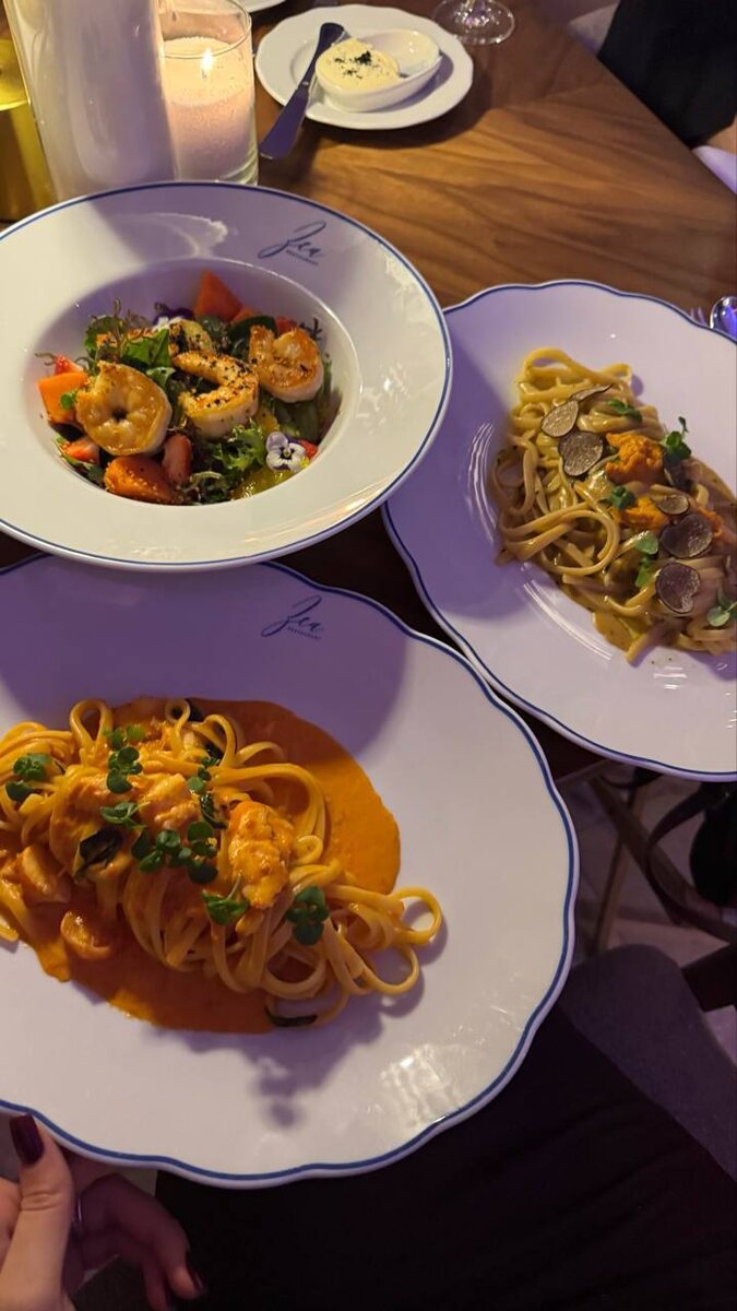 📍Zea | — Пармa с дыней (1200 ₽) потрясающее сочетание солоноватой ветчины и сочной сладкой дыни. — Картофель фри с черным трюфелем (700 ₽) хрустящая, не слишком жирная, с тонкой стружкой черного трюфеля. — Пицца мортаделла со страчателлой (2100 ₽) тонкие ломтики мясной мотаделлы и супер‑кремовая страчателла, такая нежная и вкусная пицца, к бортикам подают соус. — Салат с креветками и папайей (2350 ₽) такой свежий салат с яркой и легкой заправкой. — Лингвини с крабом и соусом биск (2600 ₽) одно из самых запоминающихся блюд, много краба, соус насыщенный, ну вау! — Лингвини с морским ежом, черным трюфелем и соусом мисо (2100 ₽) потрясающая паста, ну прям все поженилось во рту, как говорится. — Качо э Пеппе в головке сыра (2600 ₽) пасту красиво замешивают в головке пармезана, отчего она получается невероятно ароматная! В целом — очень красивое заведение, которое впечатляет своим размахом, интерьером, кухней, обслуживанием и атмосферой. Меню обширное, но при этом попробовать хочется всю