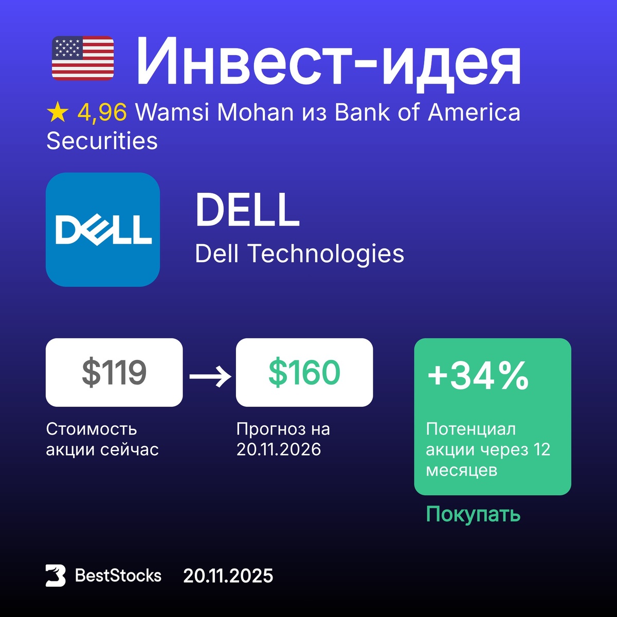 πΊπΈ ΠΠ½Π²Π΅ΡΡ-ΠΈΠ΄Π΅Ρ ΠΏΠΎ Π°ΠΊΡΠΈΠΈ Dell Technologies Π’ΠΈΠΊΠ΅Ρ: DELL ΠΡΠΎΠ³Π½ΠΎΠ·Π½Π°Ρ ΡΠ΅Π½Π°: $160 (+34%) Π Π΅ΠΊΠΎΠΌΠ΅Π½Π΄Π°ΡΠΈΡ: ΠΠΎΠΊΡΠΏΠ°ΡΡ InvestRank Π°ΠΊΡΠΈΠΈ: 8 ΠΈΠ· 10 ΠΡΠΎΠ³Π½ΠΎΠ· ΡΠ΄Π΅Π»Π°Π½: 20.11.2025 ΠΡΠΎΠ³Π½ΠΎΠ· Π΄ΠΎ: 20.11.2026 ΠΠ½Π²Π΅ΡΡ-ΠΊΠΎΠΌΠΏΠ°Π½ΠΈΡ: Bank of America Securities ΠΠ½Π°Π»ΠΈΡΠΈΠΊ: Wamsi Mohan ΠΡΡ ΡΠ΅ΠΊΠΎΠΌΠ΅Π½Π΄Π°ΡΠΈΠΈ Π½Π° ΡΠ΅Π³ΠΎΠ΄Π½Ρ β β’β’β’β’β’ π’π’π’ ΠΠΎΠ΄ΠΏΠΈΡΡΠ²Π°ΠΉΡΠ΅ΡΡ Π½Π° Π±Π΅ΡΠΏΠ»Π°ΡΠ½ΡΠ΅ ΠΊΠ°Π½Π°Π»Ρ BestStocks: ΠΠΈΠ²ΠΈΠ΄Π΅Π½Π΄Ρ Π ΠΎΡΡΠΈΠΈ β’ ΠΠ½Π²Π΅ΡΡ-ΠΈΠ΄Π΅ΠΈ ΠΏΠΎ Π°ΠΊΡΠΈΡΠΌ Π‘Π¨Π β’ ΠΠΈΠ²ΠΈΠ΄Π΅Π½Π΄Ρ Π‘Π¨Π