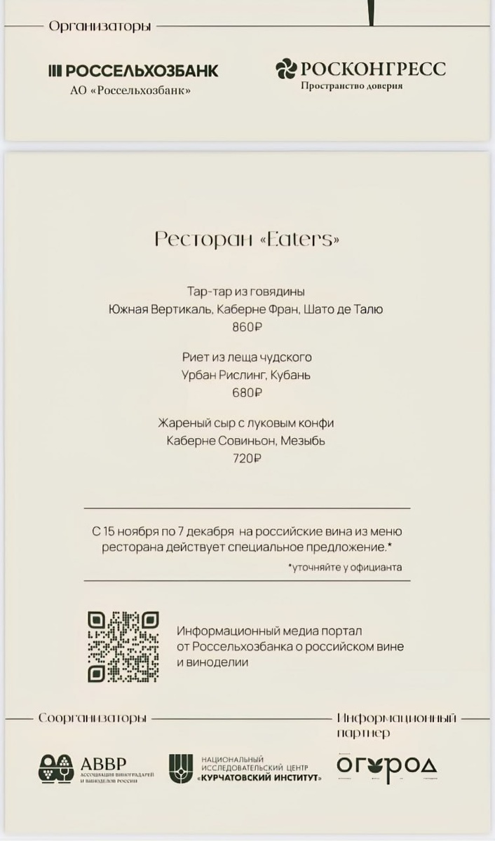 С 15 ноября по 7 декабря пройдет Российский Винодельческий Фестиваль в рамках IV Винодельческого форума 🍇 💫 Это масштабное гастрономическое событие объединит рестораны по всей стране. К фестивалю присоединились более 250 ресторанов, винных баров и кафе из разных уголков России. ✨ Команда «Eaters Bistro» тоже решила принять участие. Они подготовили для гостей уникальные гастрономические сеты, к каждому из которых сомелье и шеф-повара подобрали идеальное российское вино. Оставайтесь с нами #НашаПсковскаяобласть