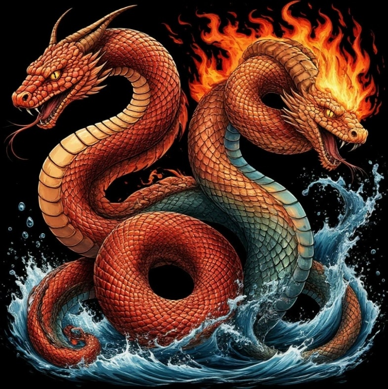 🐍 ЗМЕЯ (Огонь) + ⚫ ВОДА (год) + ♈ ОВЕН (Огонь)