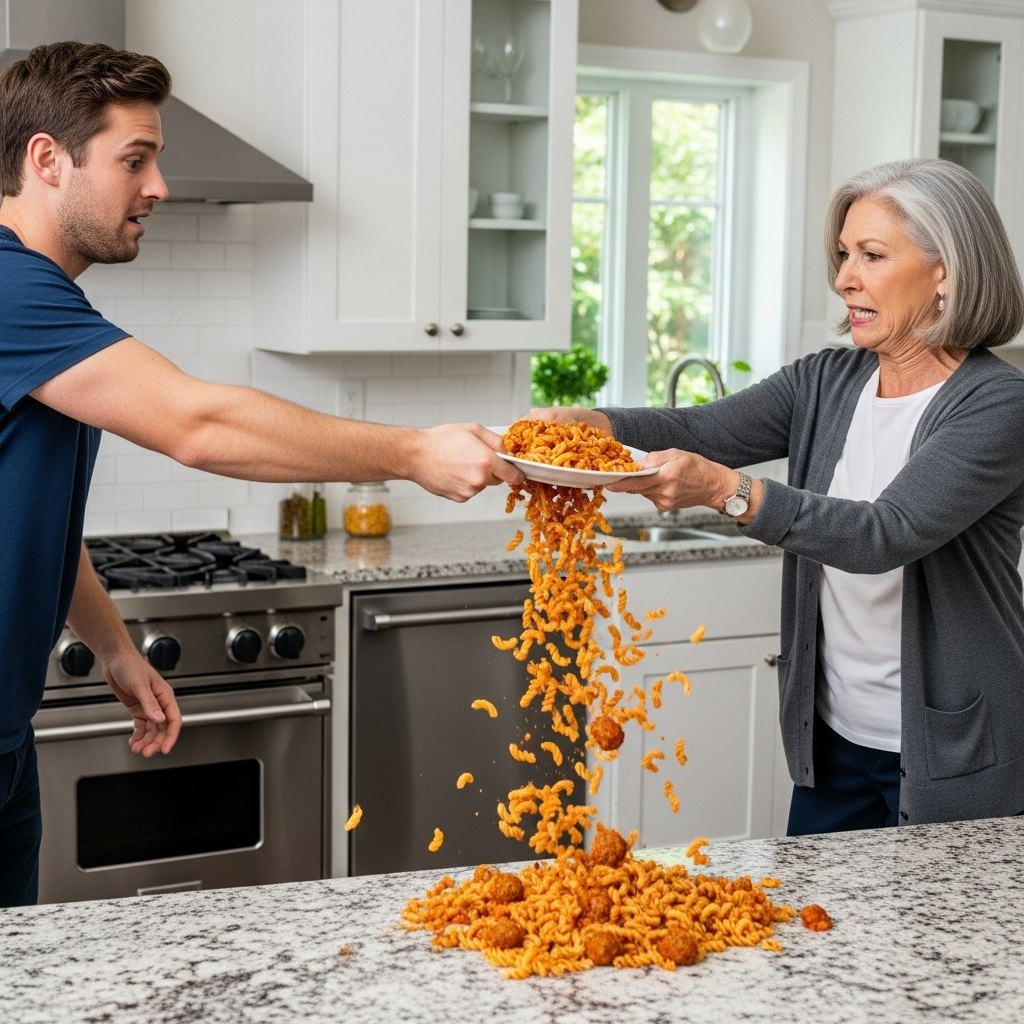 — Хватит жевать! Ты нас разоришь! — свекровь вырвала тарелку прямо из рук Андрея, и макароны брызнули на скатерть.