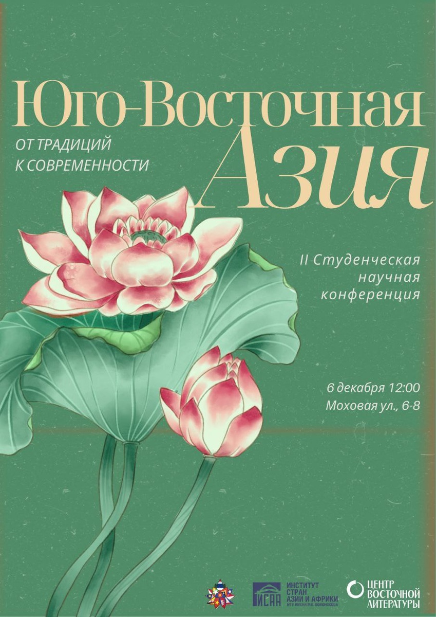 Друзья! Регистрация докладчиков на II студенческую конференцию «Юго-Восточная Азия: от традиций к современности» завершена! Благодарим всех за проявленный интерес и активность. Мы рады такому количеству заявок! В ближайшие дни на электронные адреса, указанные при регистрации, будут отправлены результаты отбора. А мы открываем регистрацию для слушателей! Если вы хотите присоединиться к нашему мероприятию, пожалуйста, заполните форму по ссылке ниже👇 https://docs.google.com/forms/d/e/1FAIpQLSdQYgpqP2jnR6MR8QyfP0Kp0DgtZ1MY8QugqIoq8rdgbKPWsw/viewform Успейте зарегистрироваться! Регистрация открыта всего на несколько дней, так как количество мест для слушателей ограничено.