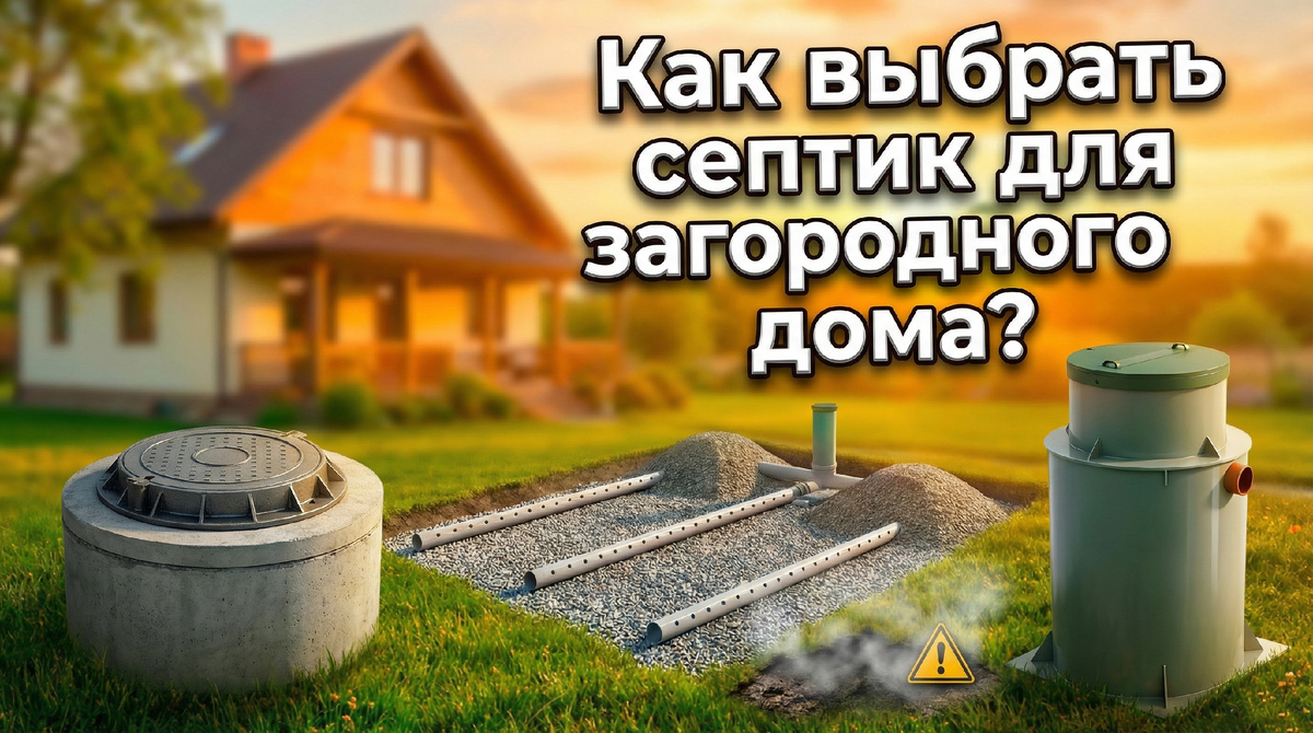 До боли пугающая ситуация: вы только переехали в новый загородный дом, все готово для комфортной жизни. Но проходит месяц – и на участке появляется зловоние, канализация работает с перебоями, а вызов ассенизаторской машины становится регулярным. Виноват не подрядчик и не сантехника, а слишком поспешный выбор септика. Именно эта система определяет, будет ли ваш дом по-настоящему приемлемым для проживания. Подписывайтесь на наш канал, у нас много полезного для тех, кто планирует построить свой дом или у кого он есть! Основные варианты Из чего можно выбирать в данном случае? Герметичный накопитель. Это простая пластиковая или бетонная емкость, в которую попадают все стоки. Цена установки – от 70 до 120 тыс. р. Но расходы не заканчиваются: за каждую откачку придется платить 800-1200 р за кубометр. При среднем расходе 5-6 м³ в месяц на семью это около 80-90 тыс. р в год. Выходит дешево при монтаже, но дорого в эксплуатации. Септик с почвенной фильтрацией. Несколько камер, где стоки отстаив