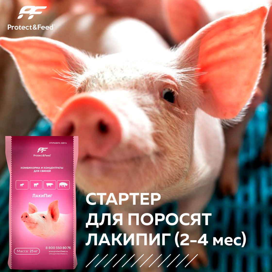 Ранее мы рассказывали вам о самом старте - престартере для поросят БэбиПиг 🍼. Он помогает малышам в первые недели жизни укрепить иммунитет и уверенно перейти к самостоятельному кормлению. А теперь настало время следующего шага - ЛакиПиг (2–4 месяца) от Protect&Feed! ✨ В составе: