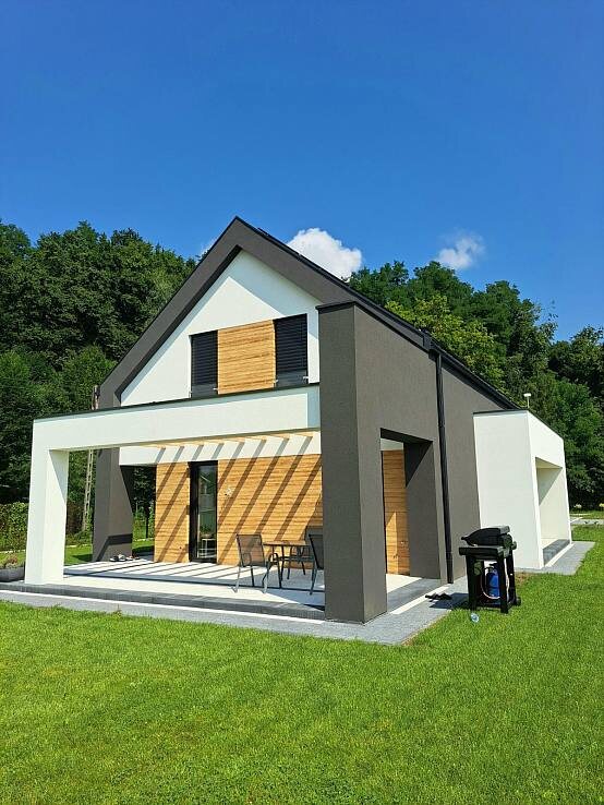 Коттедж проекта Z330. Что интересного в этом проекте. Узкая вытянутая форма и расположение входной двери дают больше гибкой возможности для выбора места постройки на участке. Необычный облик дому придают укрытые плоскими кровлями три террасы с трех сторон дома и выдвинутый вперед большой гараж. Три спальни расположены в мансарде. Площадь жилой части дома, без учета террас и гаража - 149 м². Площадь застройки 218,4 м². #дом150 #дома_от200м2 Наша строительная компания – официальный партнер архитектурного бюро Z500. Строим дома по типовым и индивидуальным проектам. У нас в каталоге есть более 1000 проектов на выбор. Рассчитаем проект, ответим на все вопросы, которые у вас могут возникнуть. Строим хорошо и быстро. В наших домах всегда тепло. СК Мой коттедж Екатеринбург
